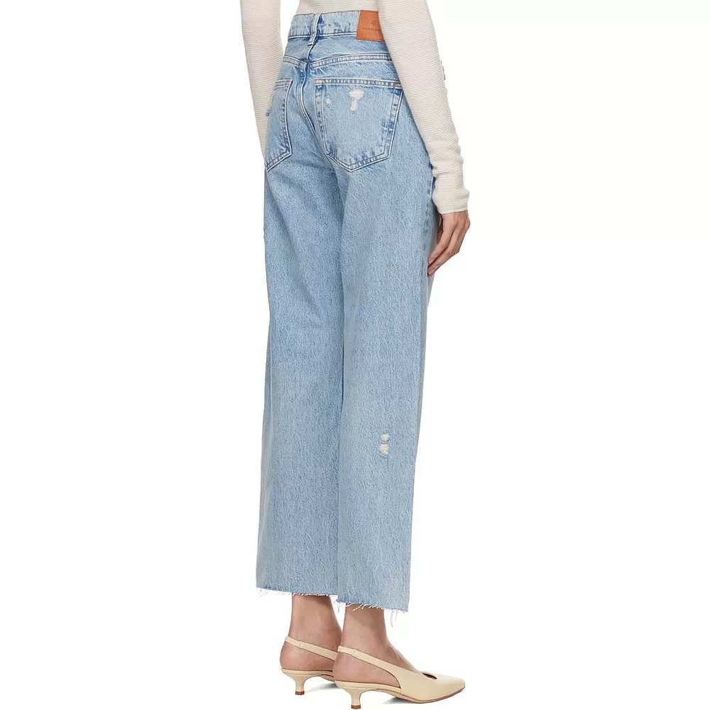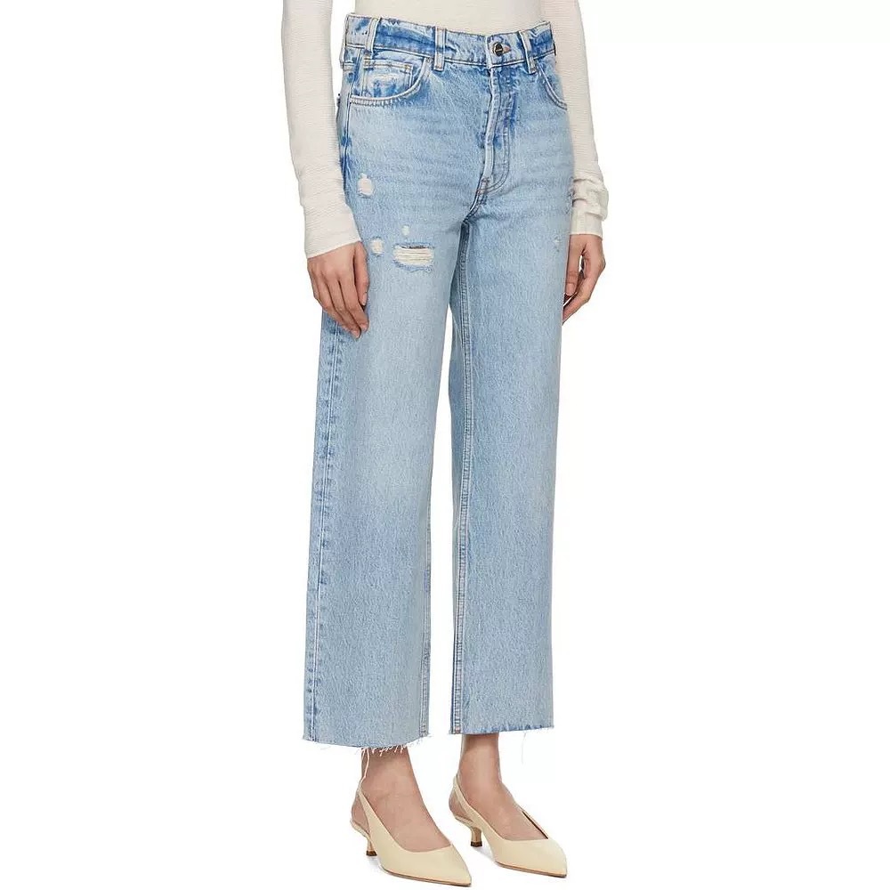 이른 봄 2025 새로운 유럽과 미국의 AB 같은 스타일 높은 허리 라이트 블루 수제 스트레이트 스트레이트 스크래스트 엣지 크롭 청바지