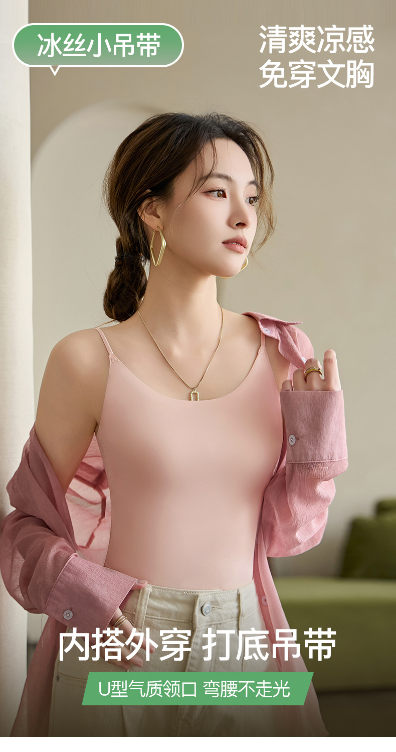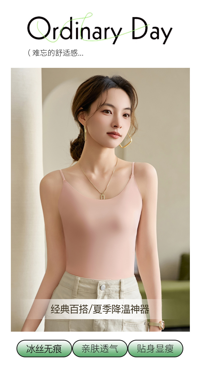 원활한 아이스 실크 카미솔 여성용 내베이스 셔츠 안티 워킹 슬림 핏 여름 세트 얇은 탑 가슴 패드없이스토어 가기