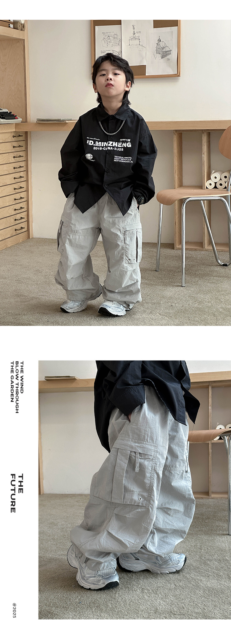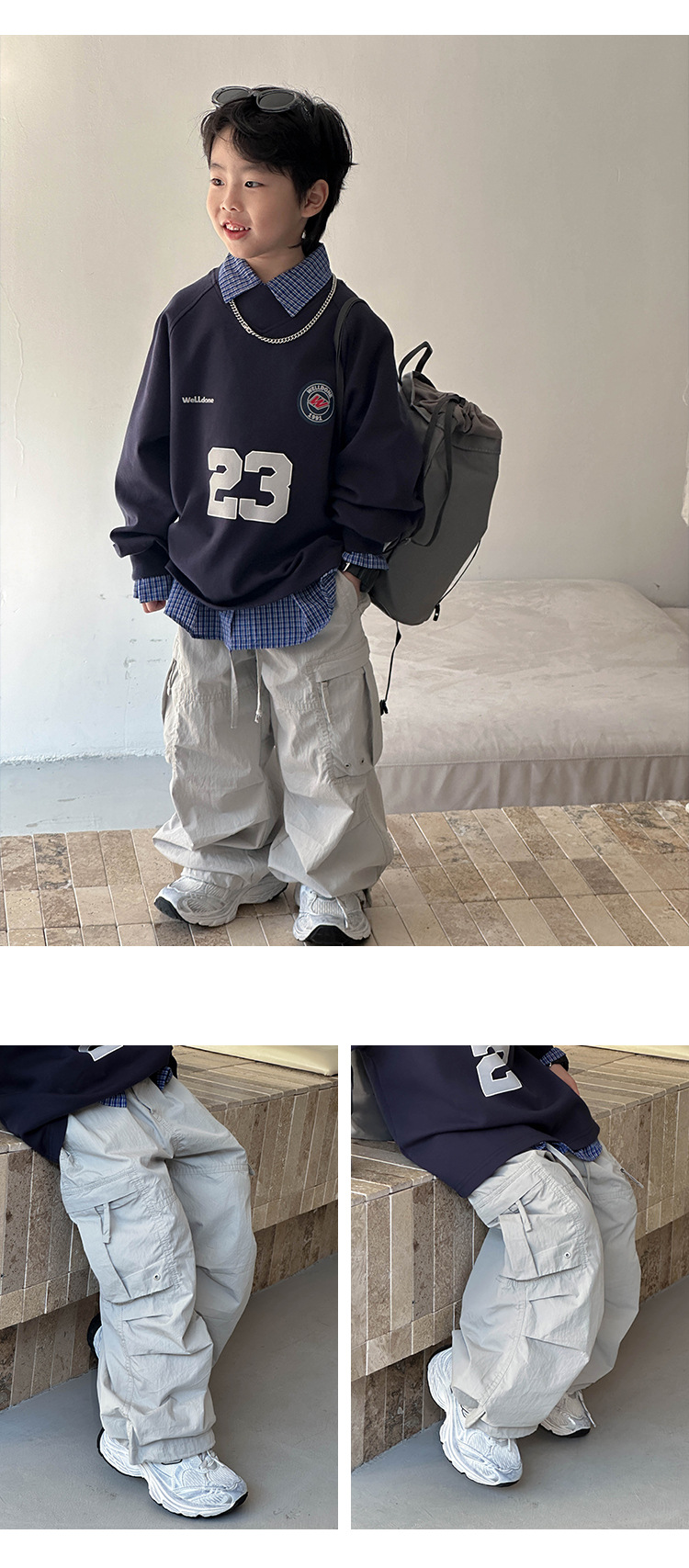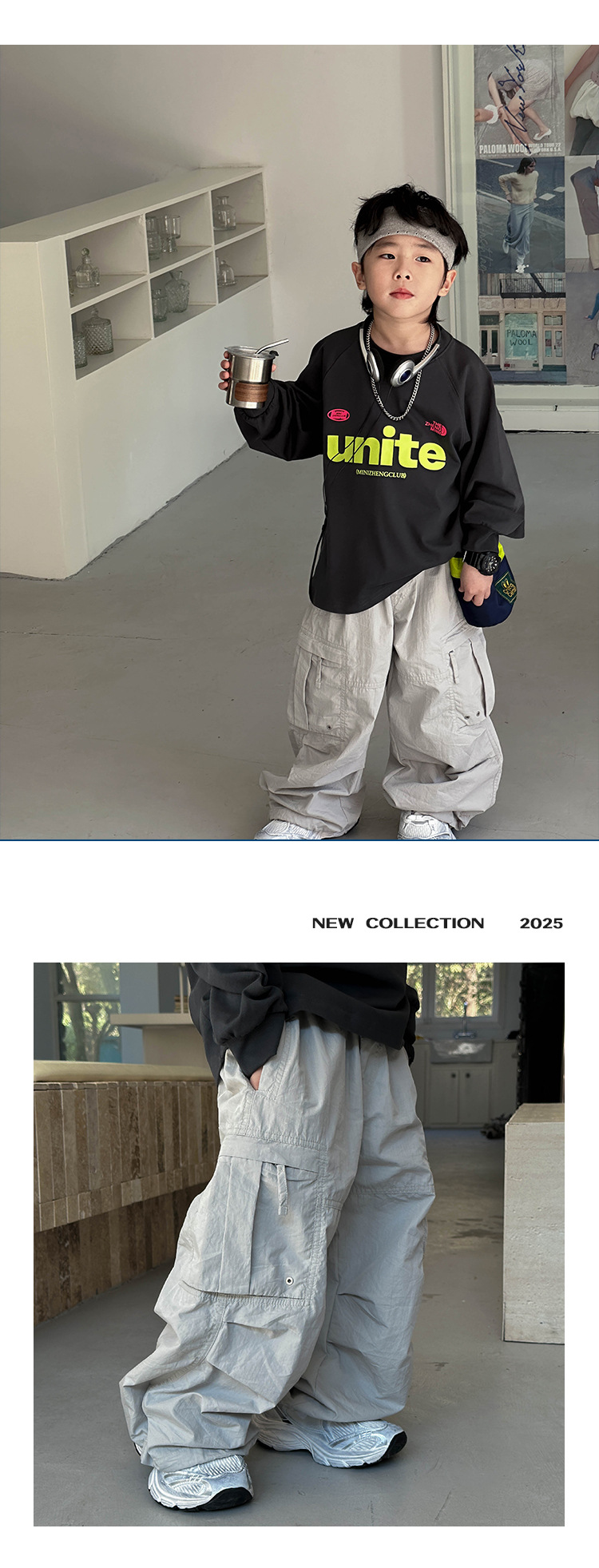 어린이 한국식 바지 2025 봄 새 도착 소년 '중공업 올매치 캐주얼 바지 어린이 유행 유행 바지스토어 가기