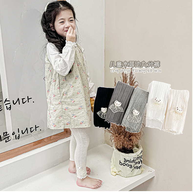 봄과 가을 새로운 소녀 팬티 스타킹 솔리드 컬러 9 포인트 팬티 스타킹 베이비 레깅스 올 매치 베이비 팬티 스타킹