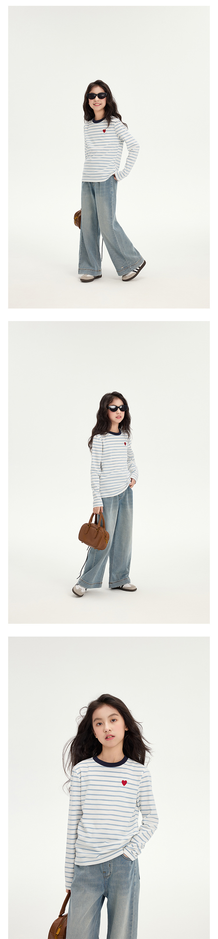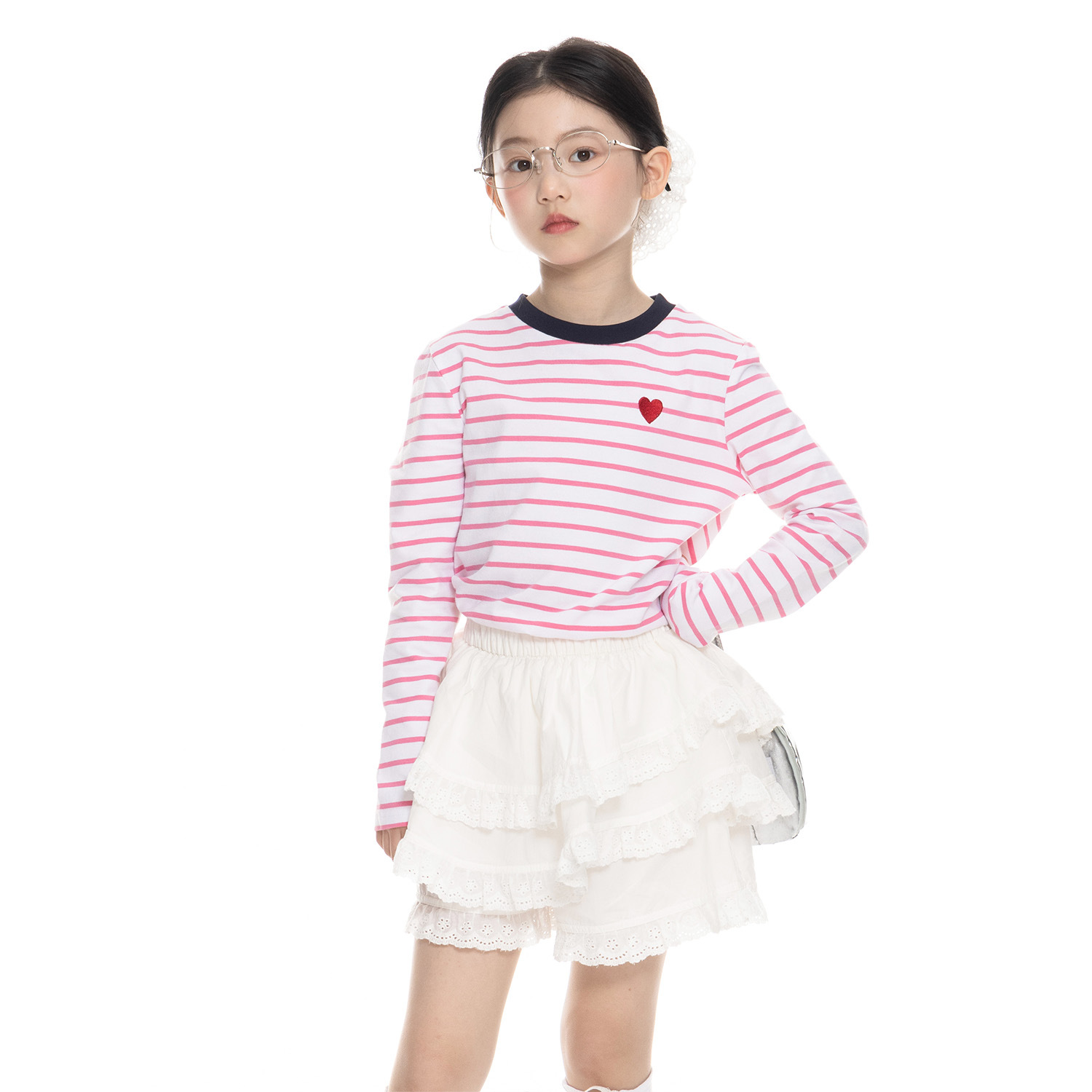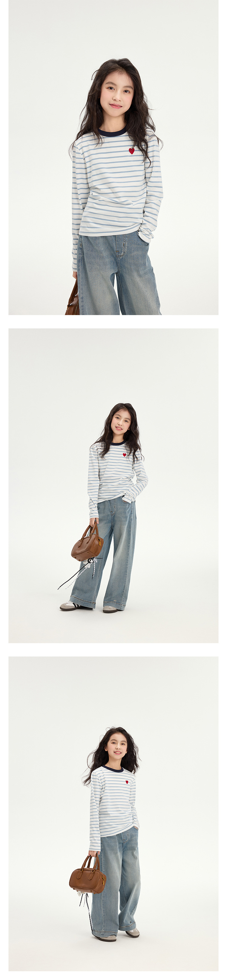 여아용 사랑스러운 배색 스트라이프 티셔츠 2026 봄 신상 아동용 한국 스타일 긴팔 베이스 레이어 캐주얼 상의 트렌디스토어 가기
