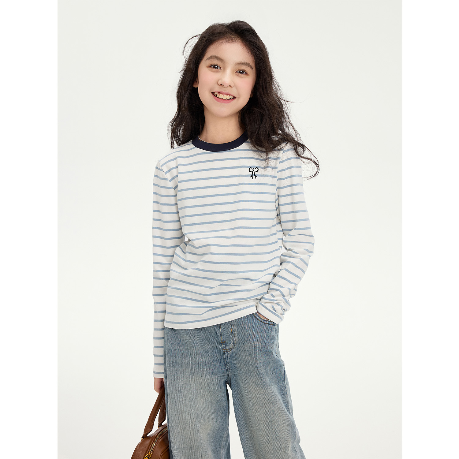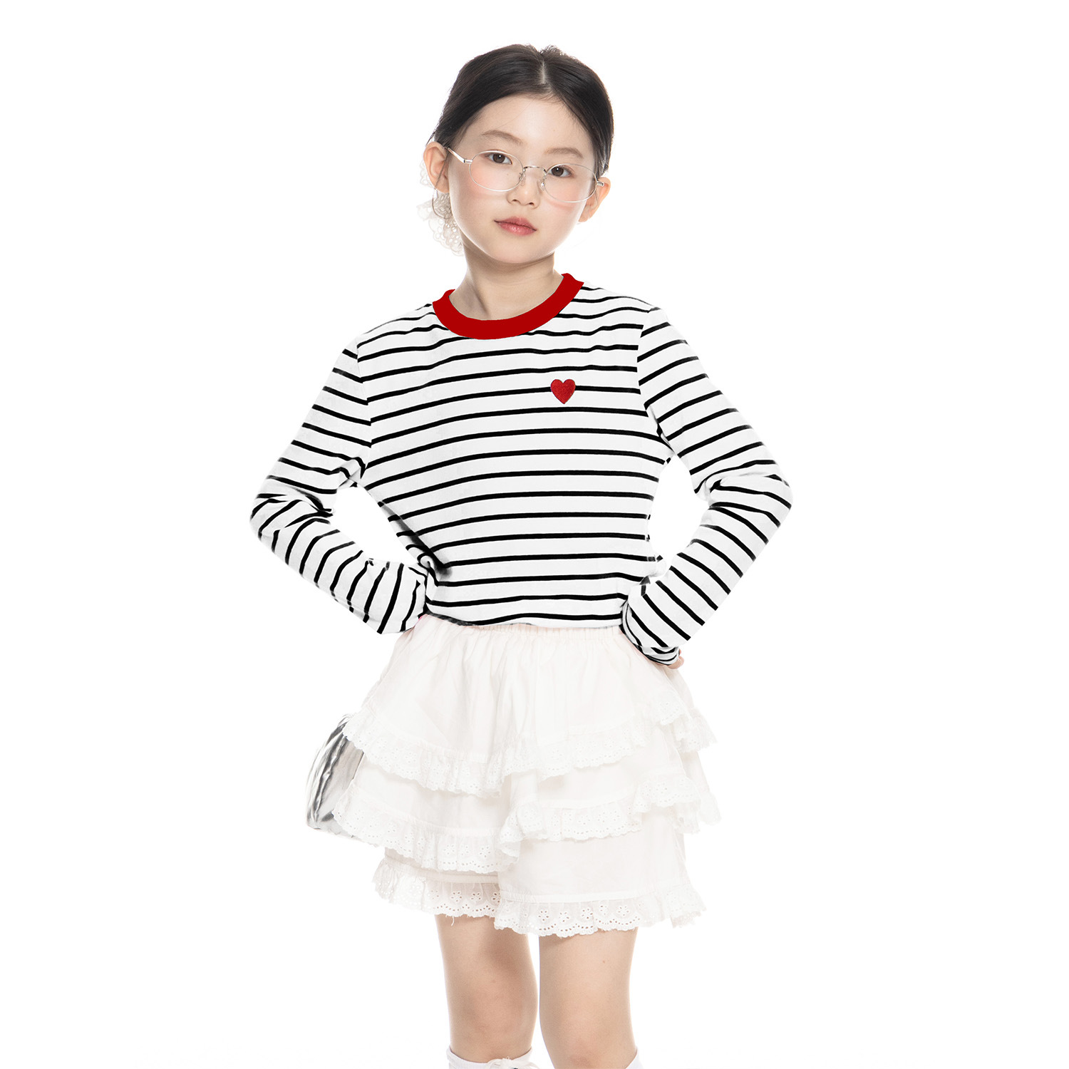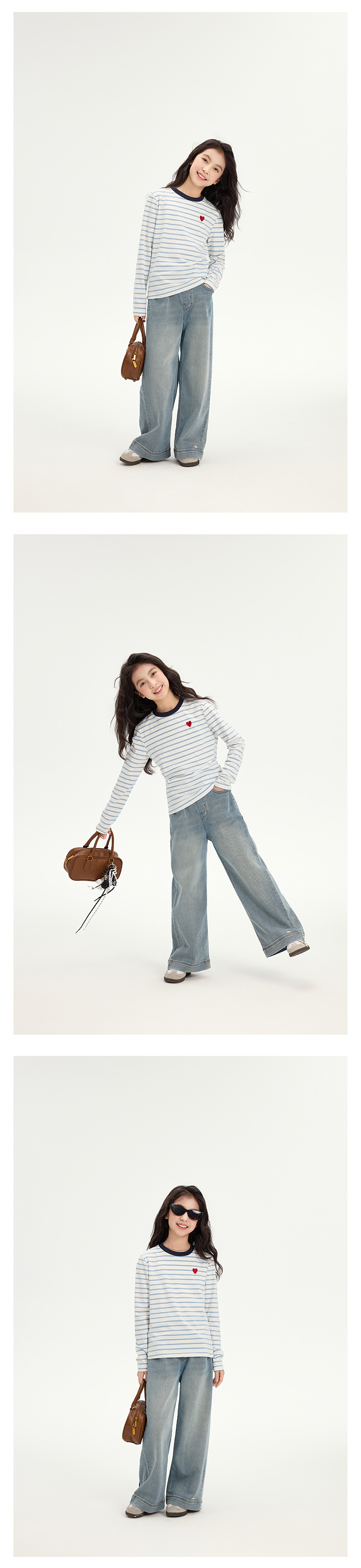 여아용 사랑스러운 배색 스트라이프 티셔츠 2026 봄 신상 아동용 한국 스타일 긴팔 베이스 레이어 캐주얼 상의 트렌디스토어 가기