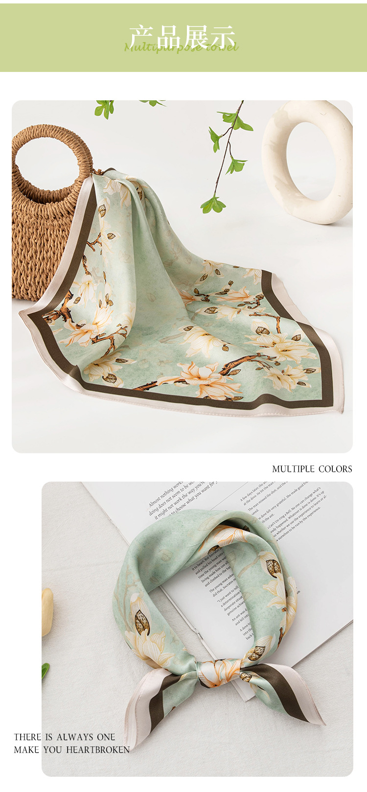 53CM 멀버리 실크 스카프, 고급스러운 느낌의 여성용 넥 스카프, 실크 스카프, 전문적인 넥 스카프, 헤어 스카프, 다용도