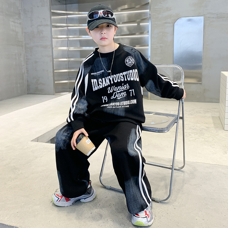 봄 중다 소년 세트 새로운 아동복 어린이 소년 투피스 세트 맞춤형 캐주얼 스포츠웨어 트렌디 쿨 다이파