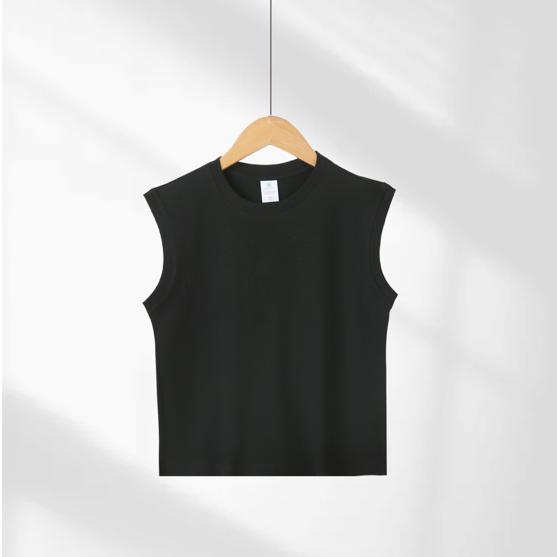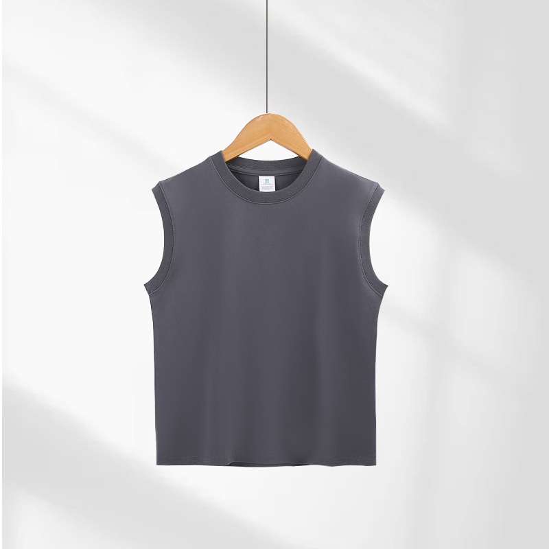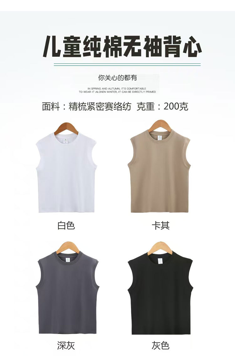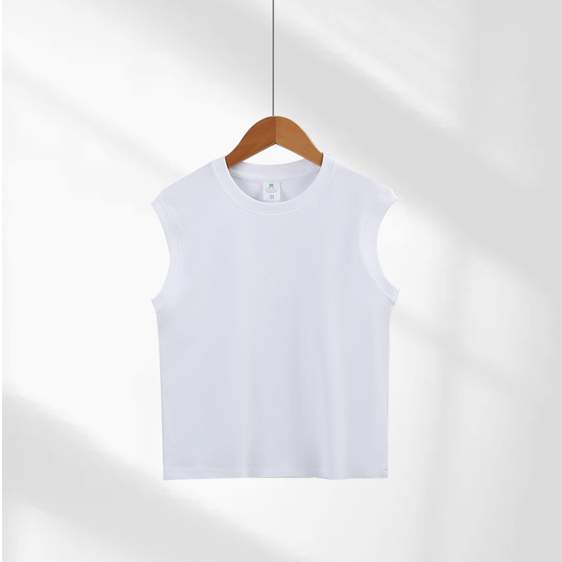 200g 어린이 민소매 티셔츠 조끼 순면 흰색 옷 소년 소녀 단색 양복 조끼 셔츠 내부 재킷스토어 가기