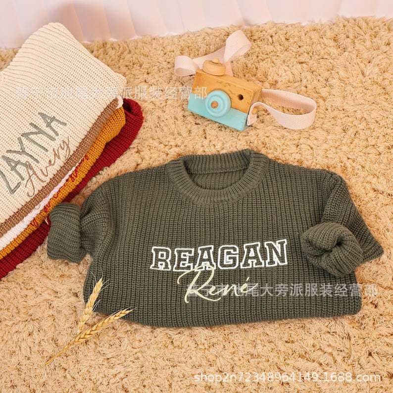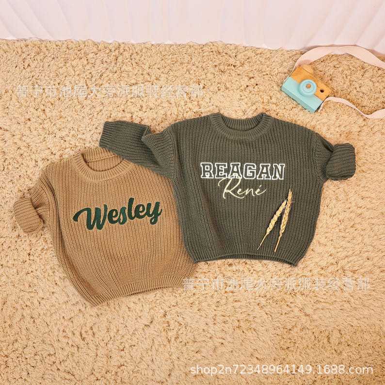 매일 모든 경기 어린이 겨울 울 스웨터 새로운 자수 사용자 정의 따뜻한 느슨한 단색 둥근 목 자수 국경