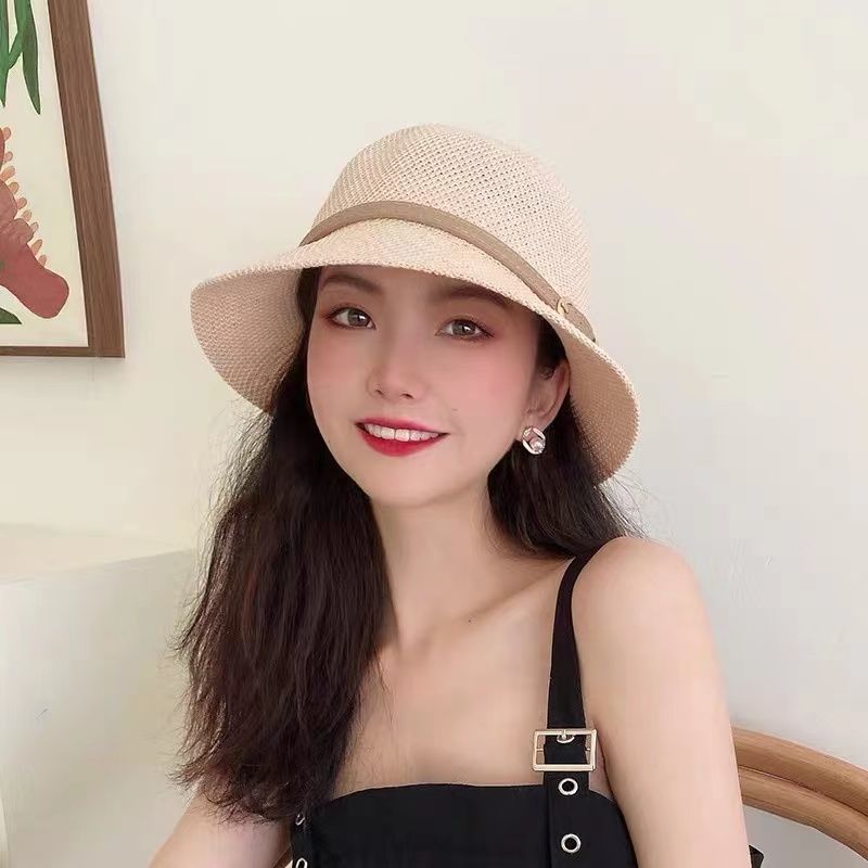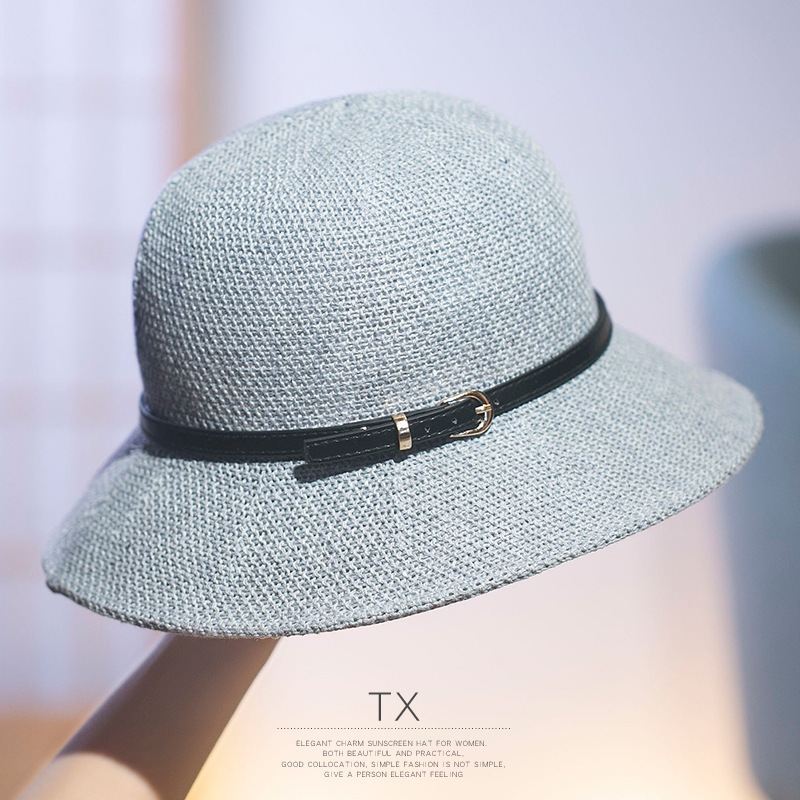 한국 리넨 짠 어부 모자 여자 여름 일본 예술 올 매치 태양 모자 여성의 태양 보호 모자