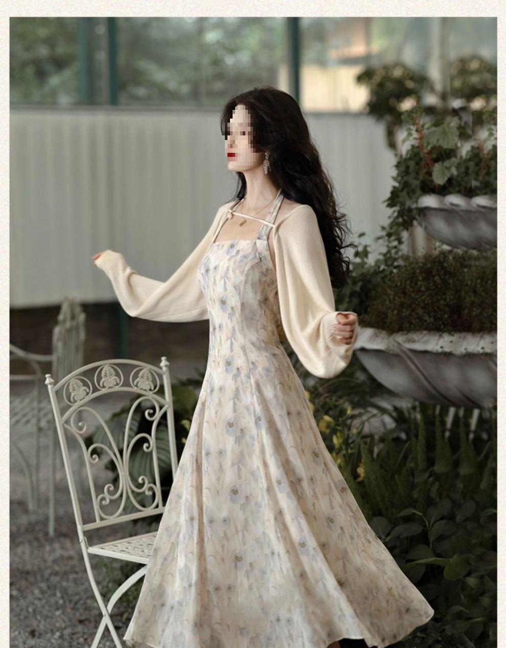 프랑스 꽃 슬링 원피스 여성의 봄 2025 새로운 틈새 젠틀 스타일 우아한 달콤한 투피스 원피스스토어 가기