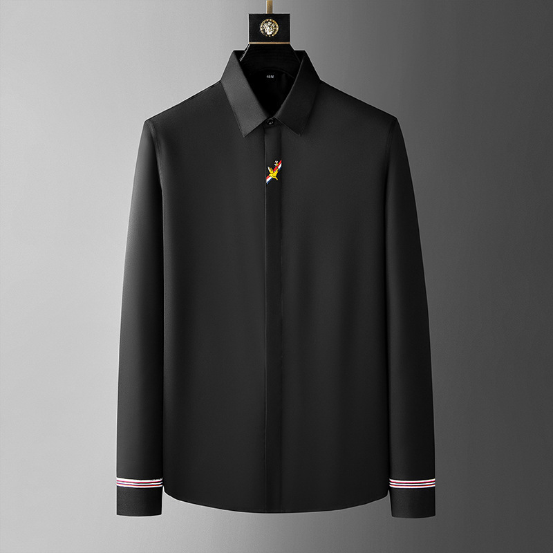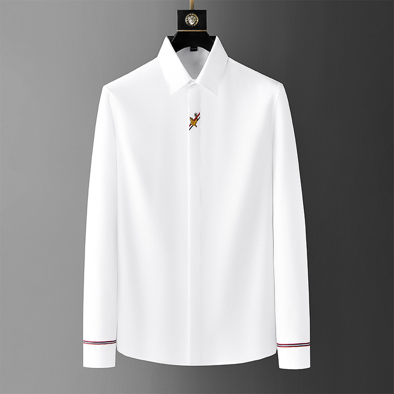 2023 가을 긴 소매 셔츠 남성용 간단한 1 만 바늘 자수 셔츠 남성용 슬림 핏 비 다림질 남성용 셔츠