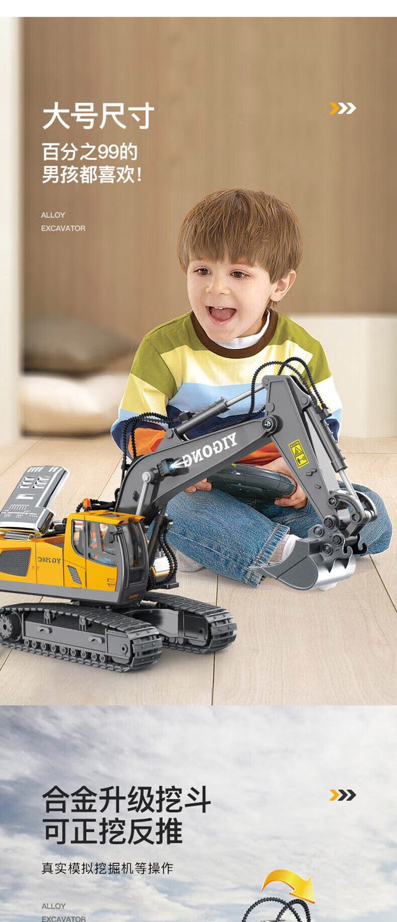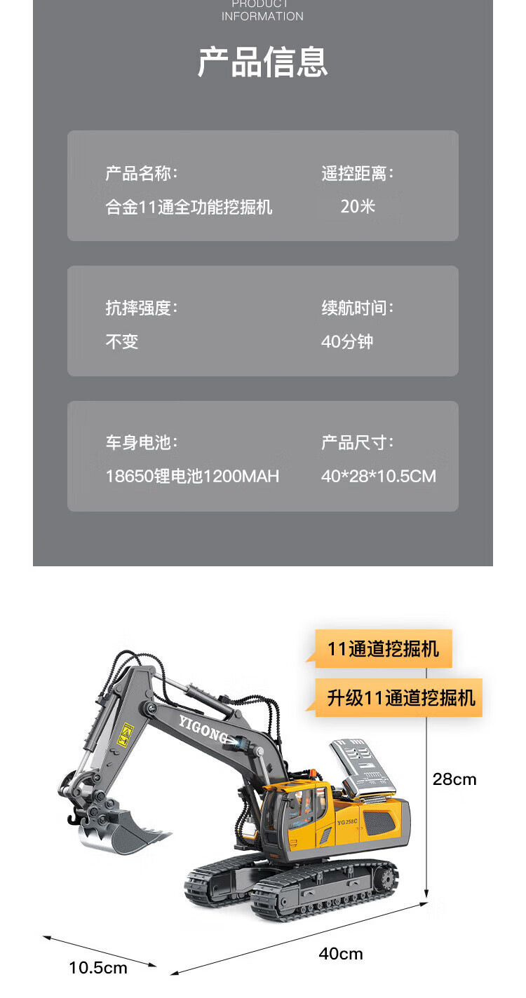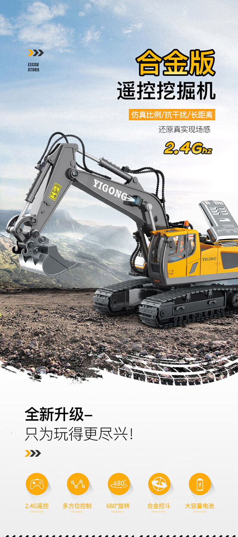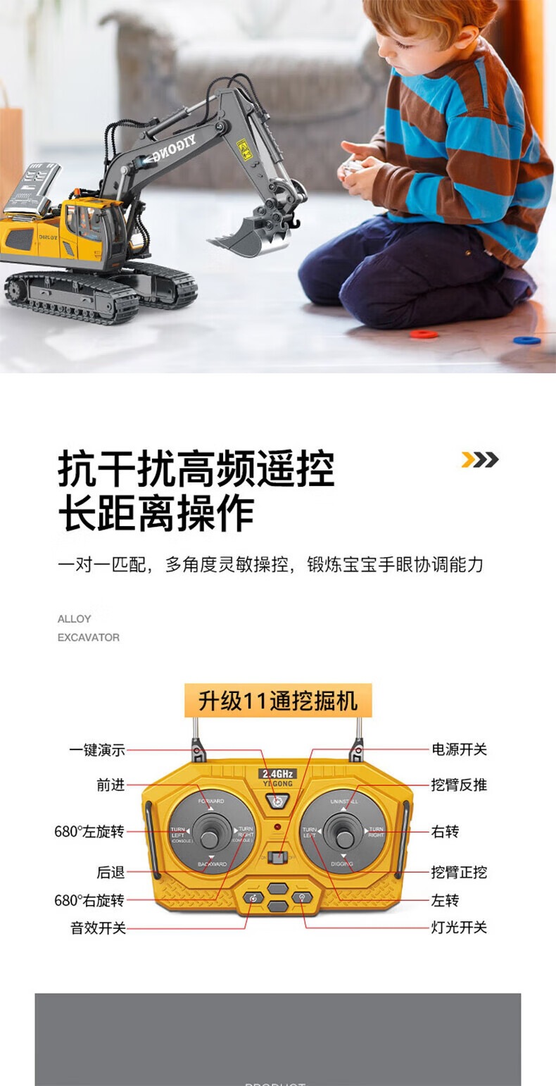 이공 2.4G 무선 조종 굴삭기 합금 굴착기 모델 엔지니어링 차량 무선 조종 자동차 소년 소녀 무한 회전스토어 가기