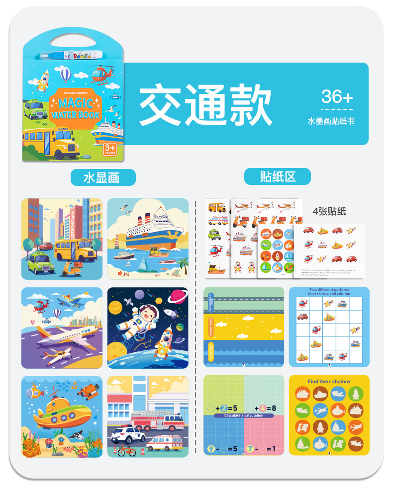 4款水墨画(交通、动物、海洋、恐龙)外箱尺寸:50.5*38*27CM 装箱数:80 毛重:16KG
