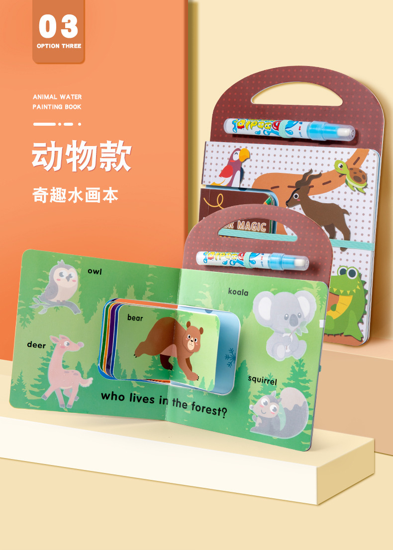 조기 교육인지 수화 책 반복 낙서 물 색칠 그림 책 어린이 동물인지 스티커 교육 장난감스토어 가기