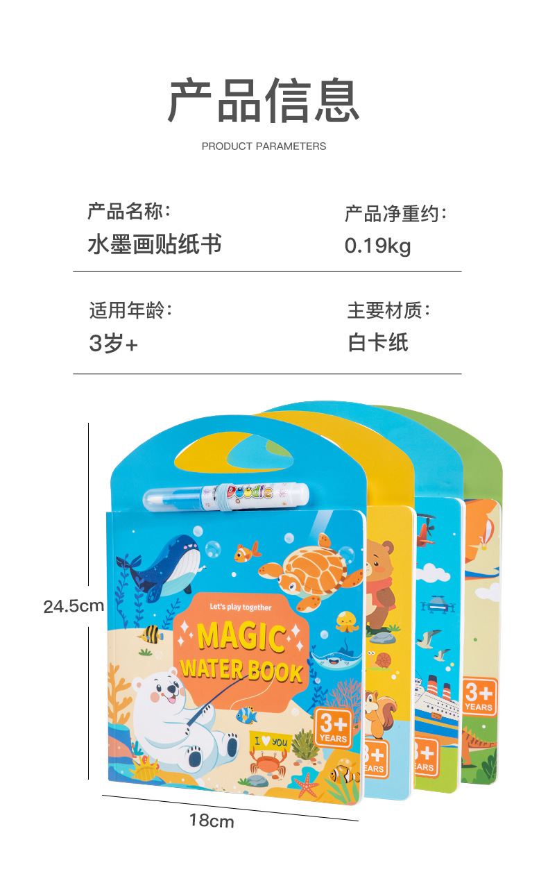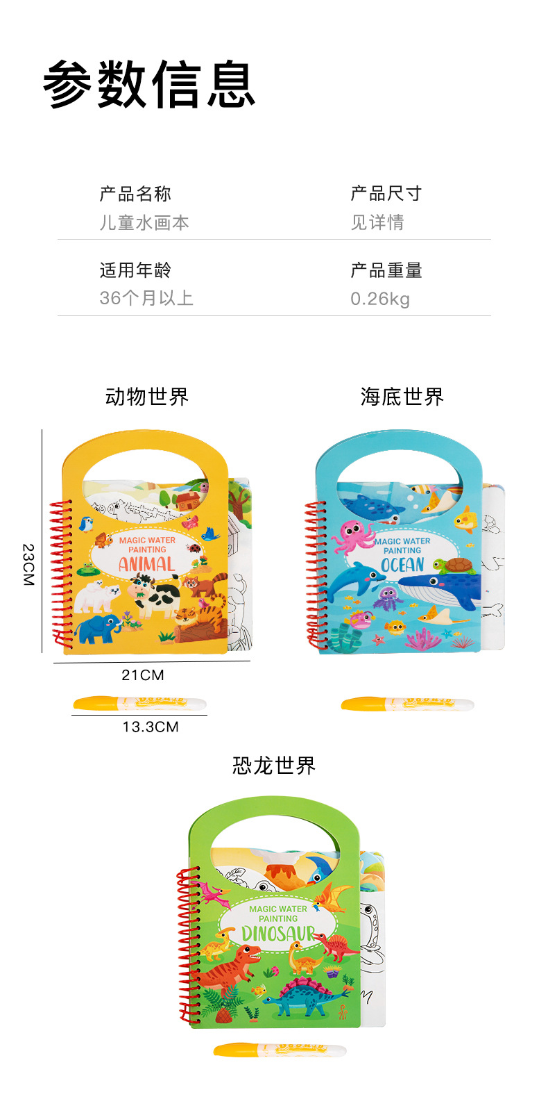 3款水画本(动物、海洋、恐龙)外箱尺寸:45*25*35CM 装箱数56 毛重:14.5KG