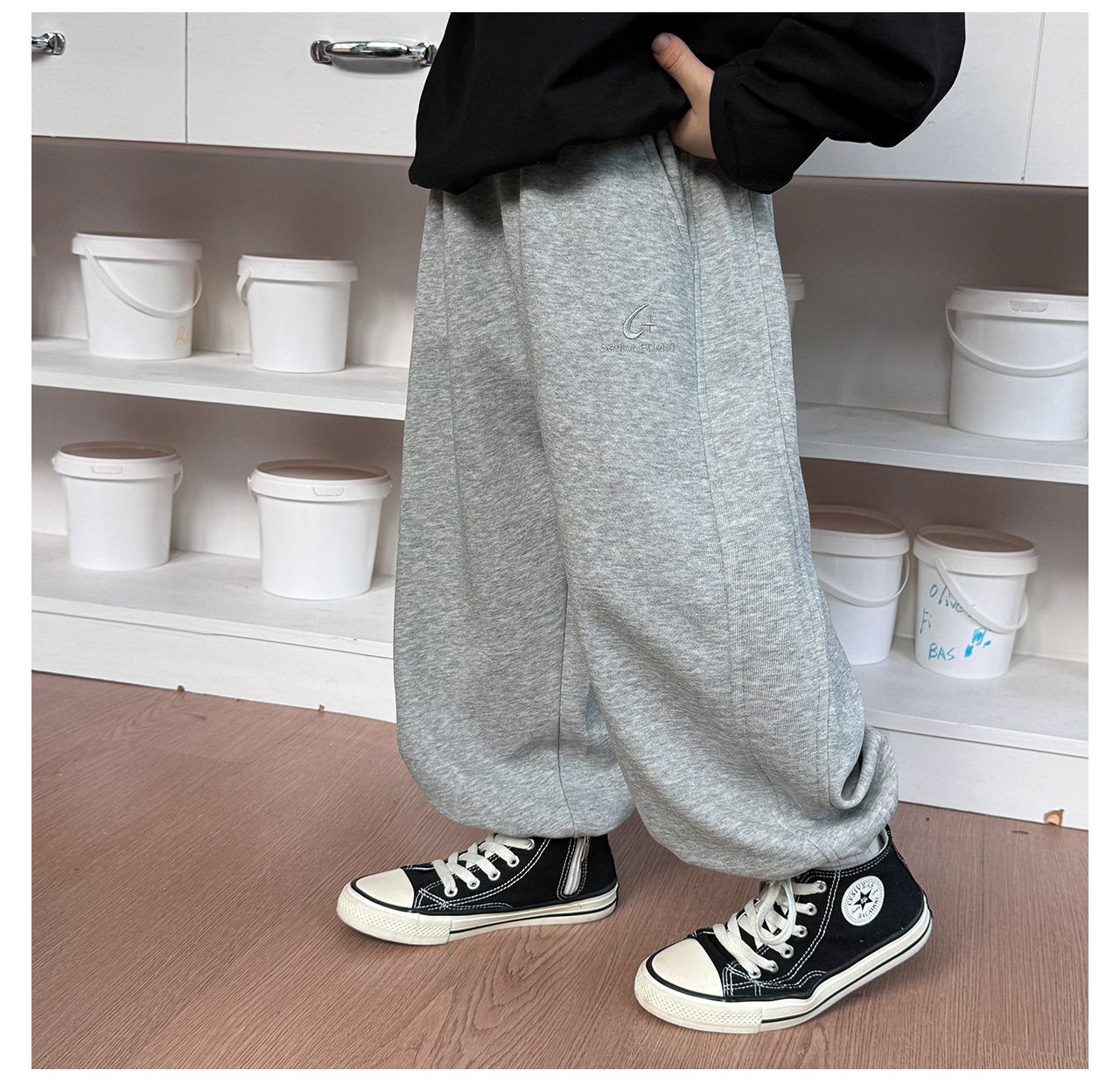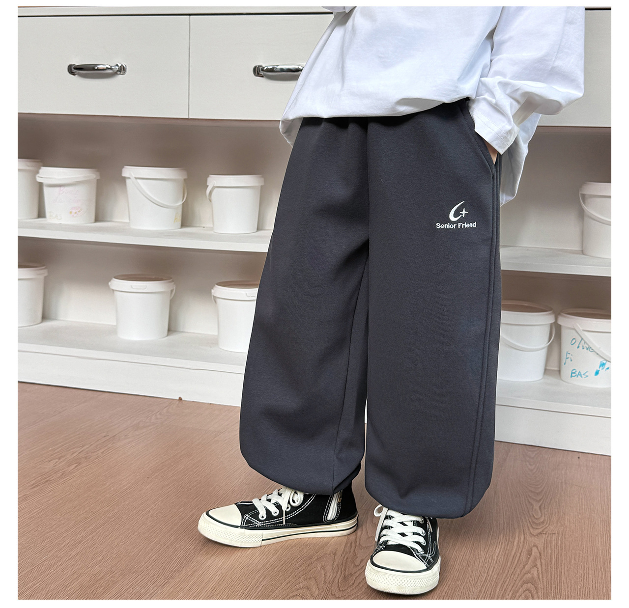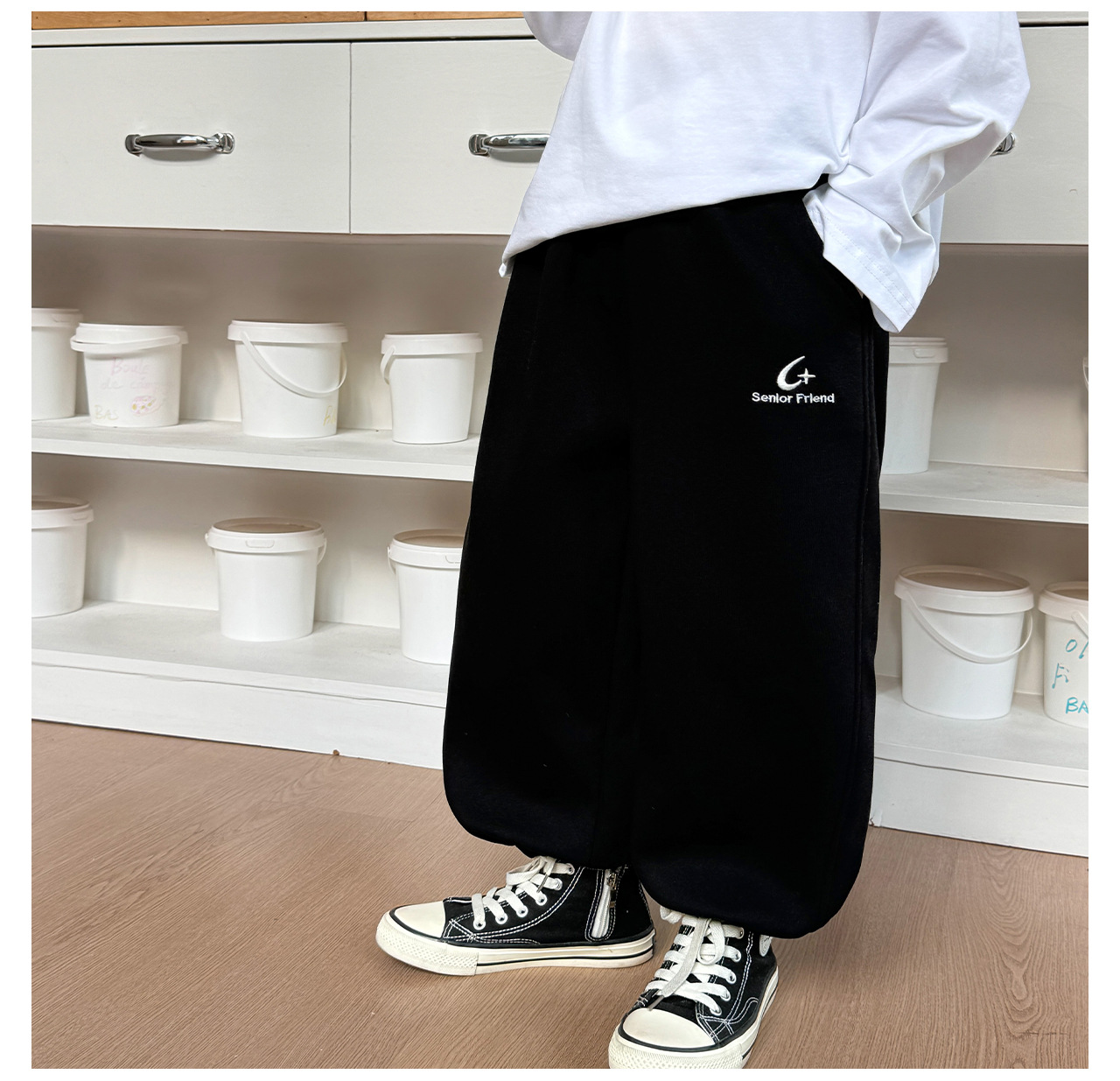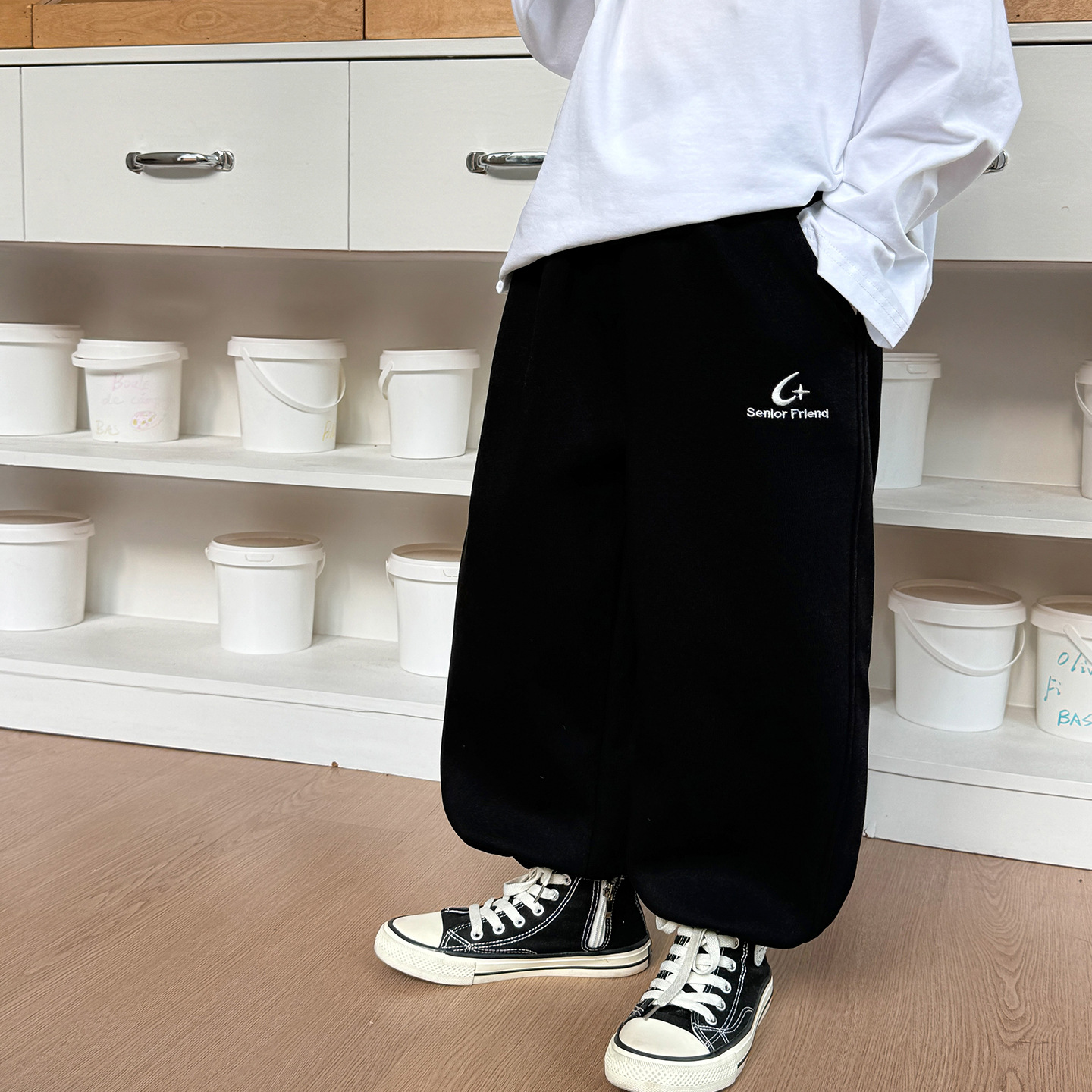 통쿠2026 남아용 봄 스타일 호주 직조 아동복 패션 레터 자수 캐주얼 긴바지 루즈핏 아동 스웨트팬츠