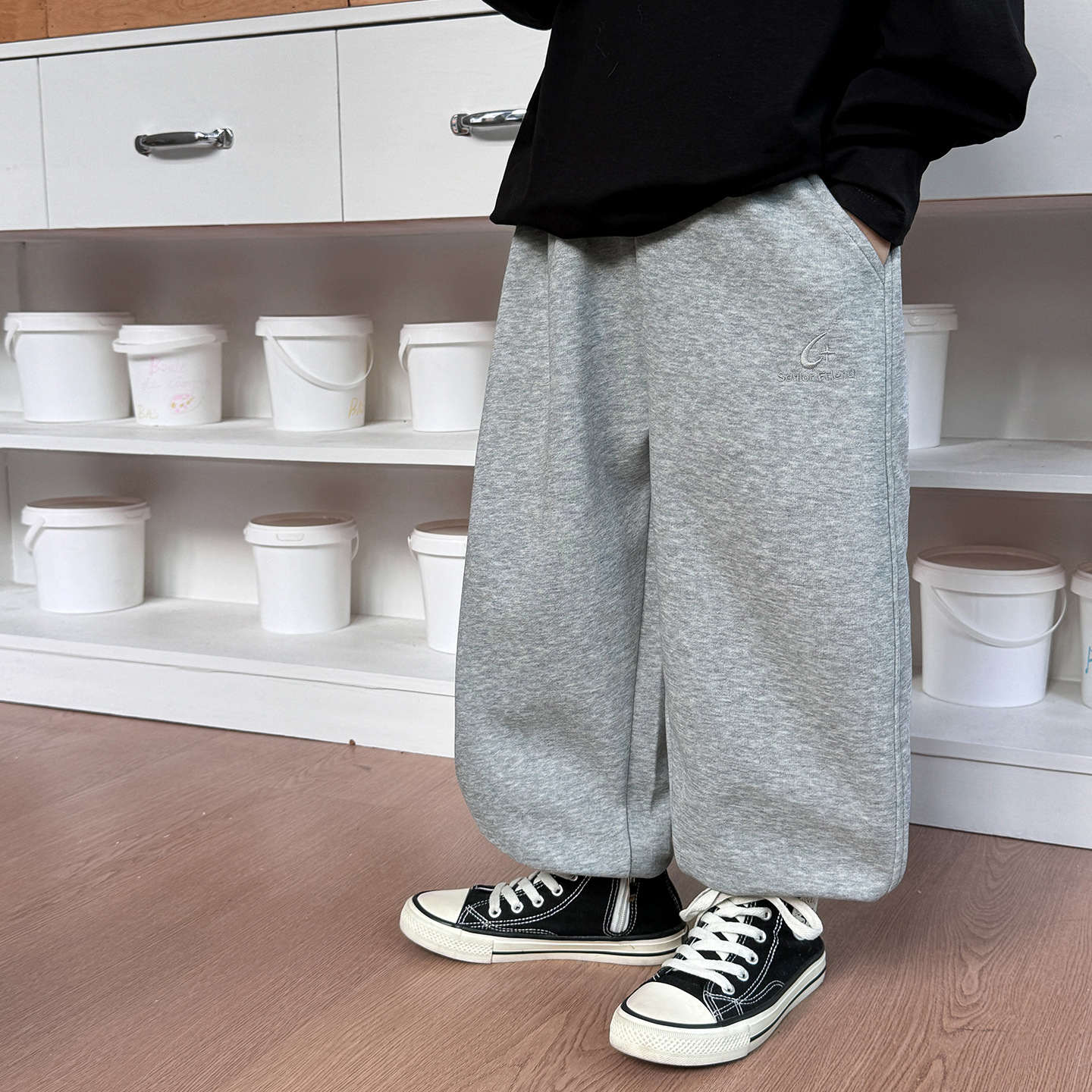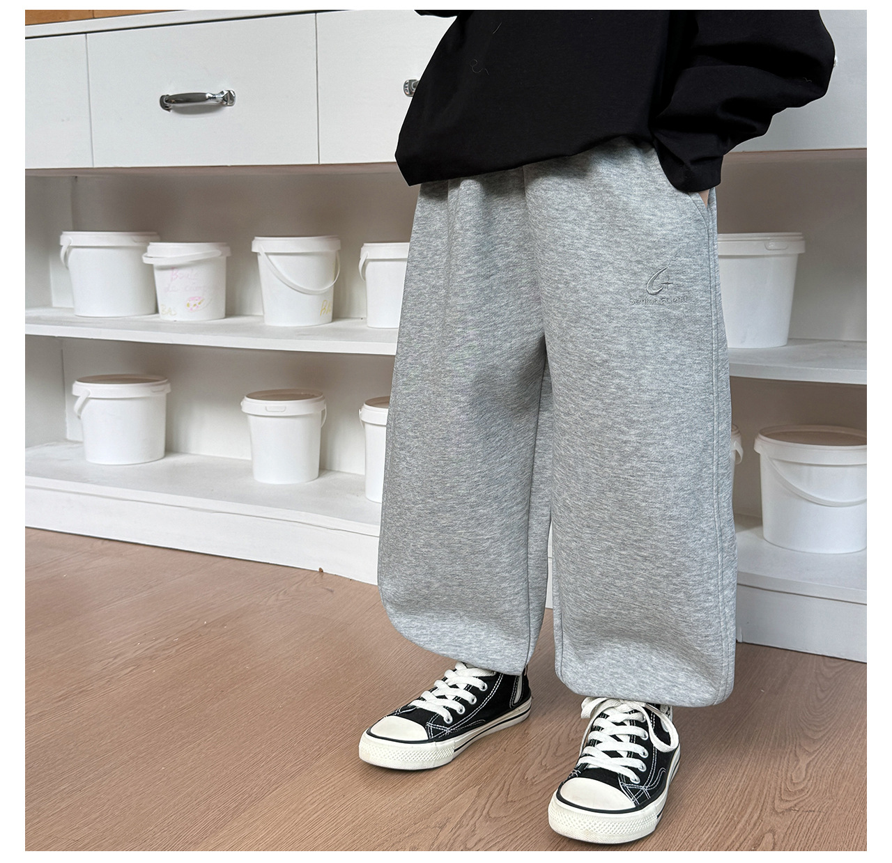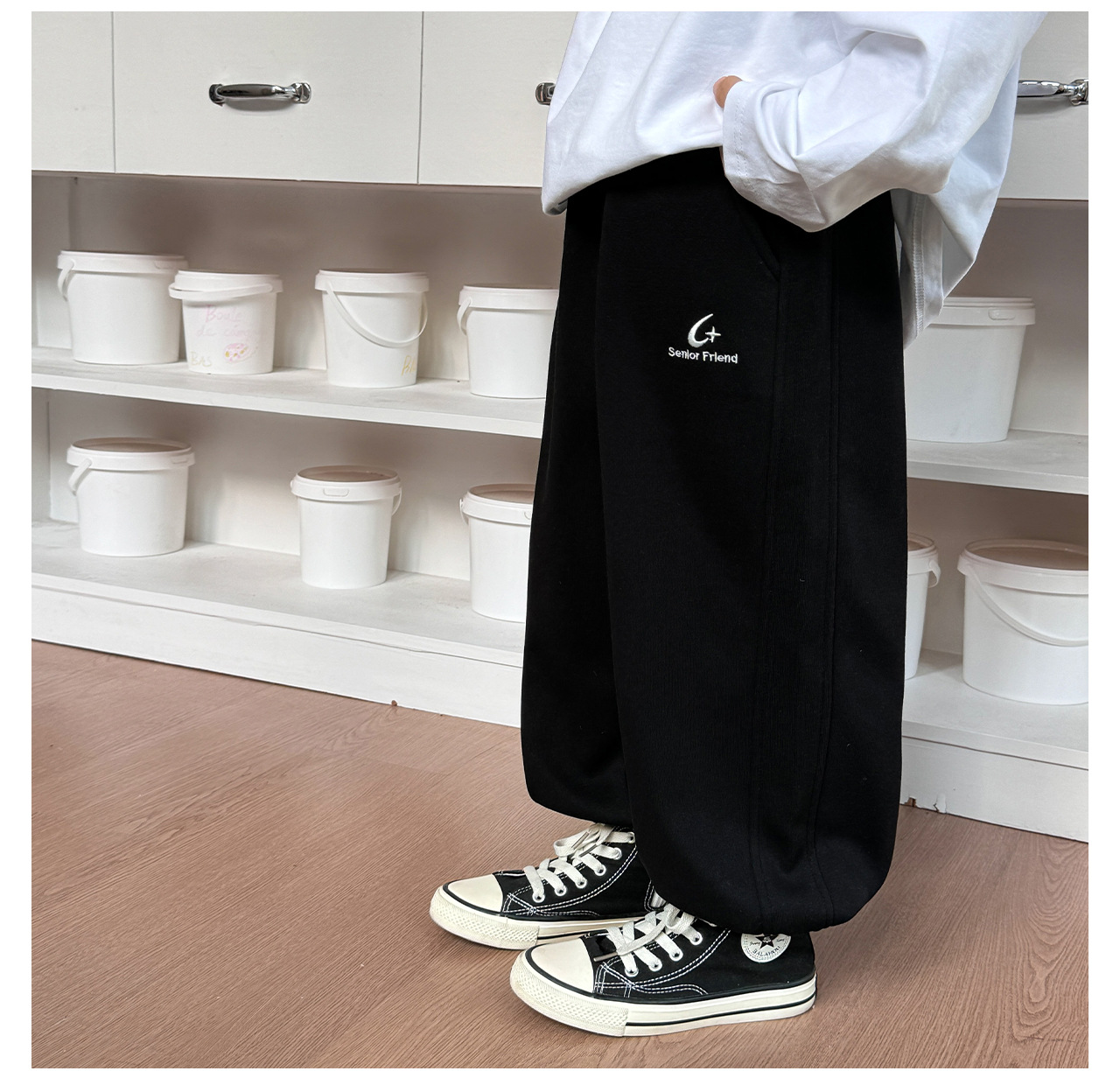 통쿠2026 남아용 봄 스타일 호주 직조 아동복 패션 레터 자수 캐주얼 긴바지 루즈핏 아동 스웨트팬츠