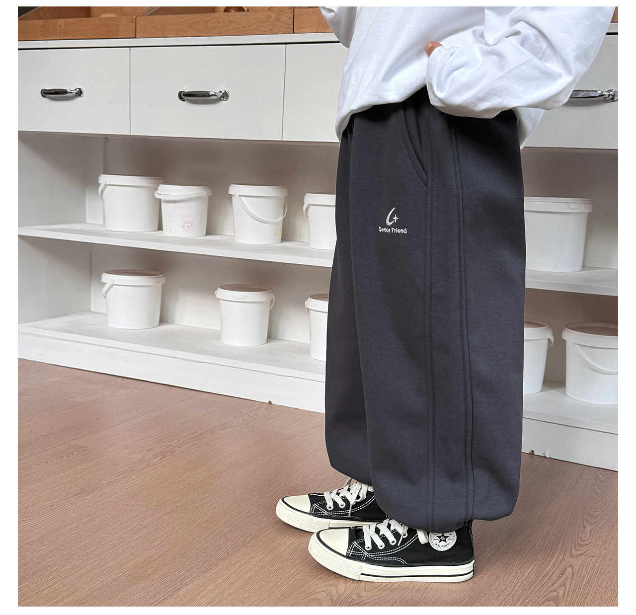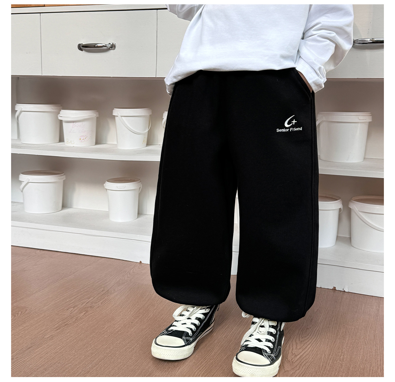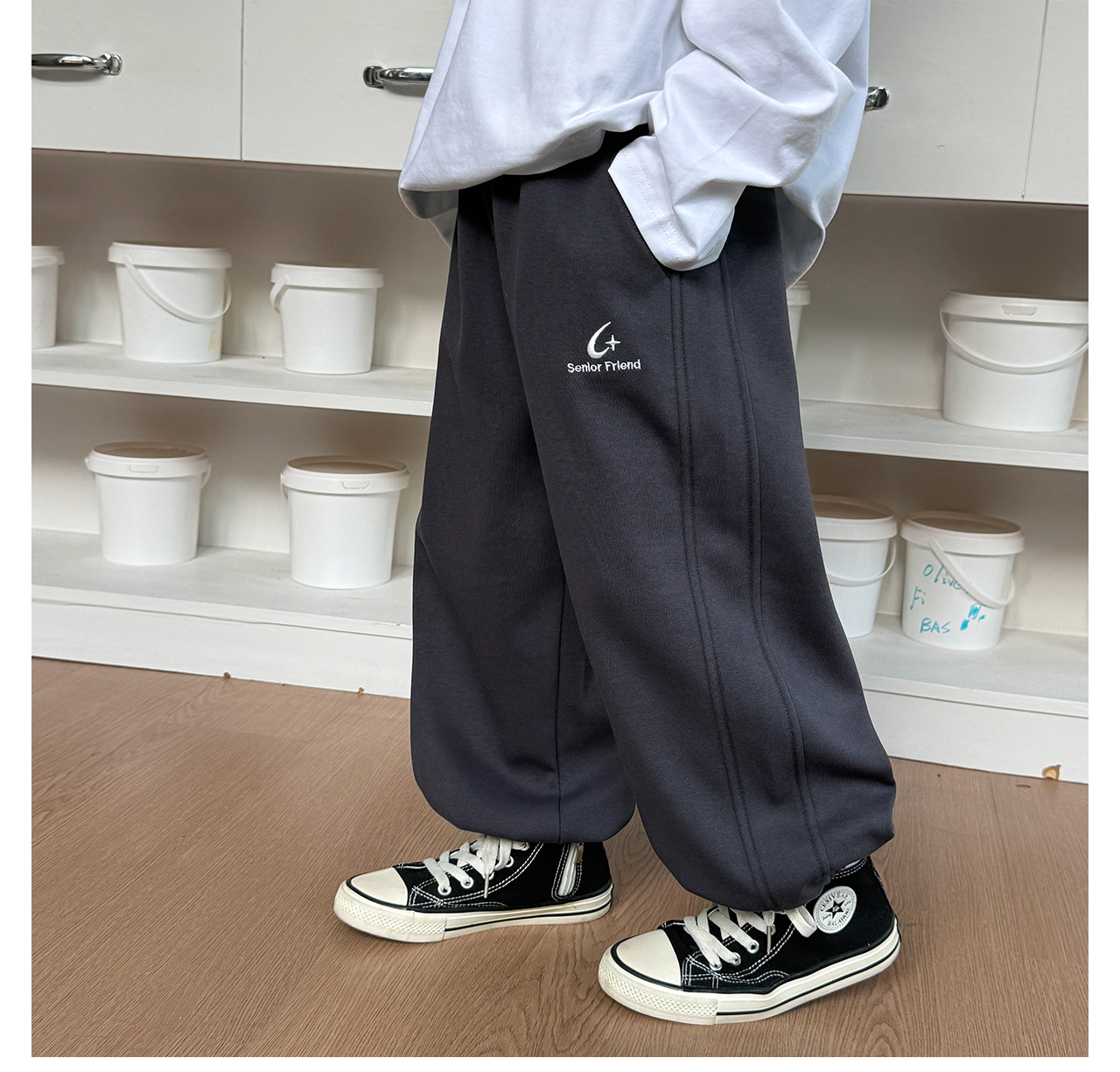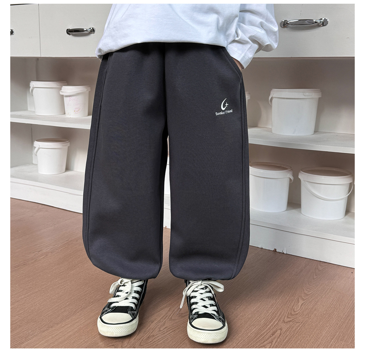 통쿠2026 남아용 봄 스타일 호주 직조 아동복 패션 레터 자수 캐주얼 긴바지 루즈핏 아동 스웨트팬츠