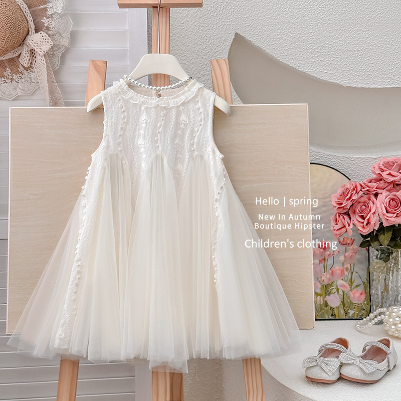 여아 조끼 스타일의 세련된 공주 드레스 2025년 여름 아동용 패셔너블한 여아 생일 드레스 민소매 원피스스토어 가기
