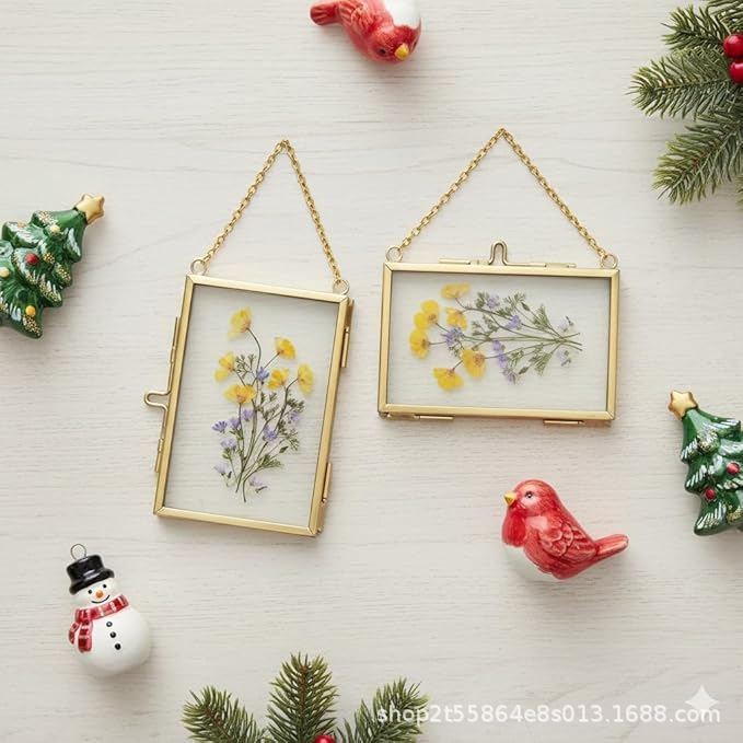 3.5x2.5 인치 유리 프레임 DIY 프레스 꽃 아트 황동 교수형 사진 프레임 투명 미니 사진 프레임