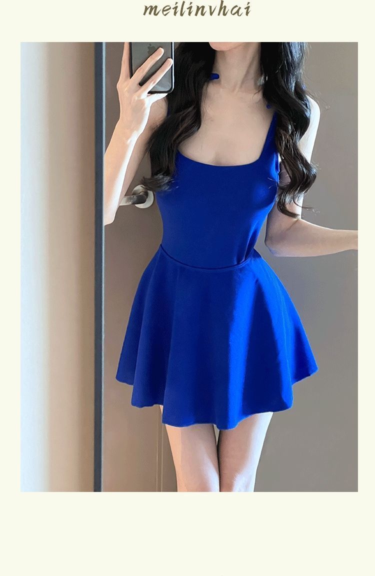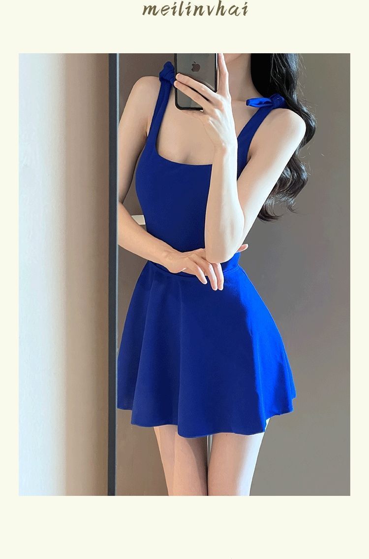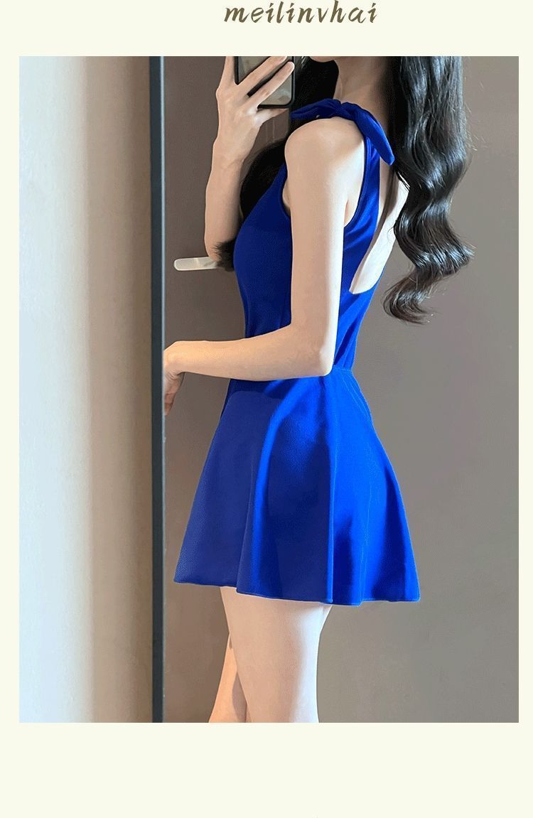 Shen Mengchen 동일 스타일 수영복 여성 2025 새로운 스타일 벨리 커버 슬리밍 아름다운 온천 블루 휴가 수영복