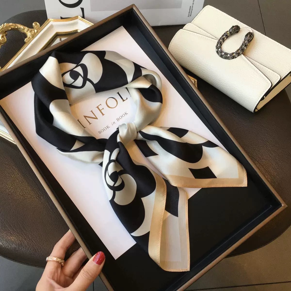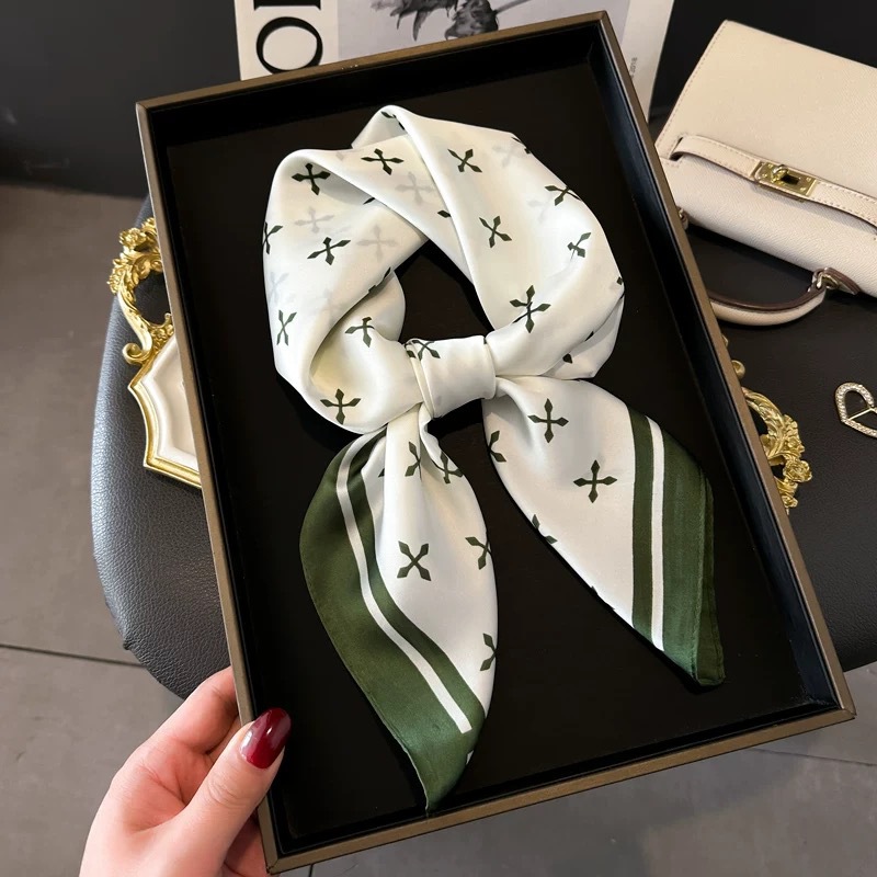 새로운 빈티지 실크 스카프 기질 조커 스카프 프랑스 70 작은 사각형 스카프 리본 모조 실크 하이 센스 스카프 도매