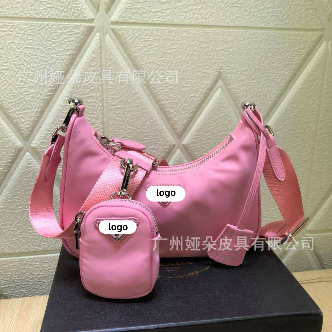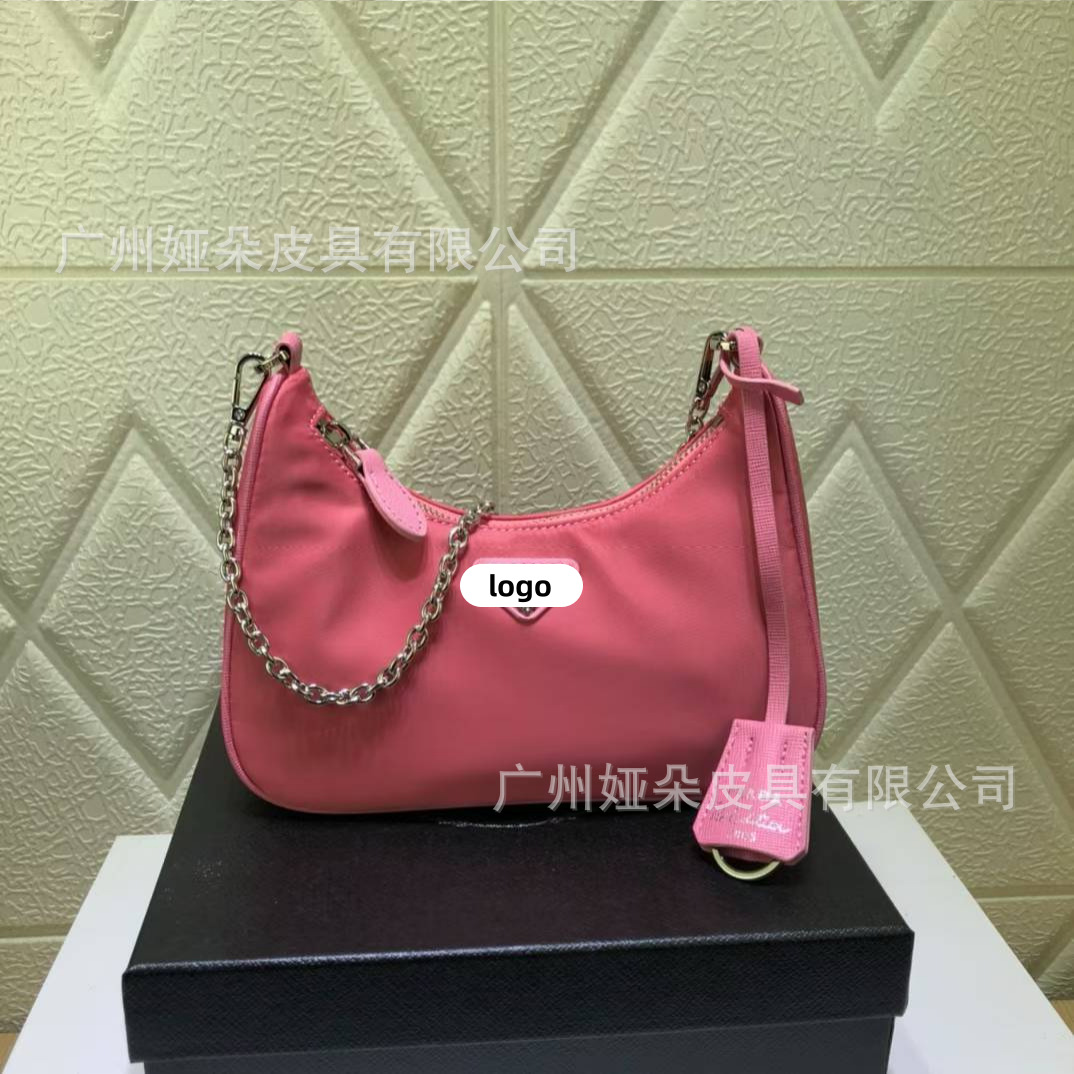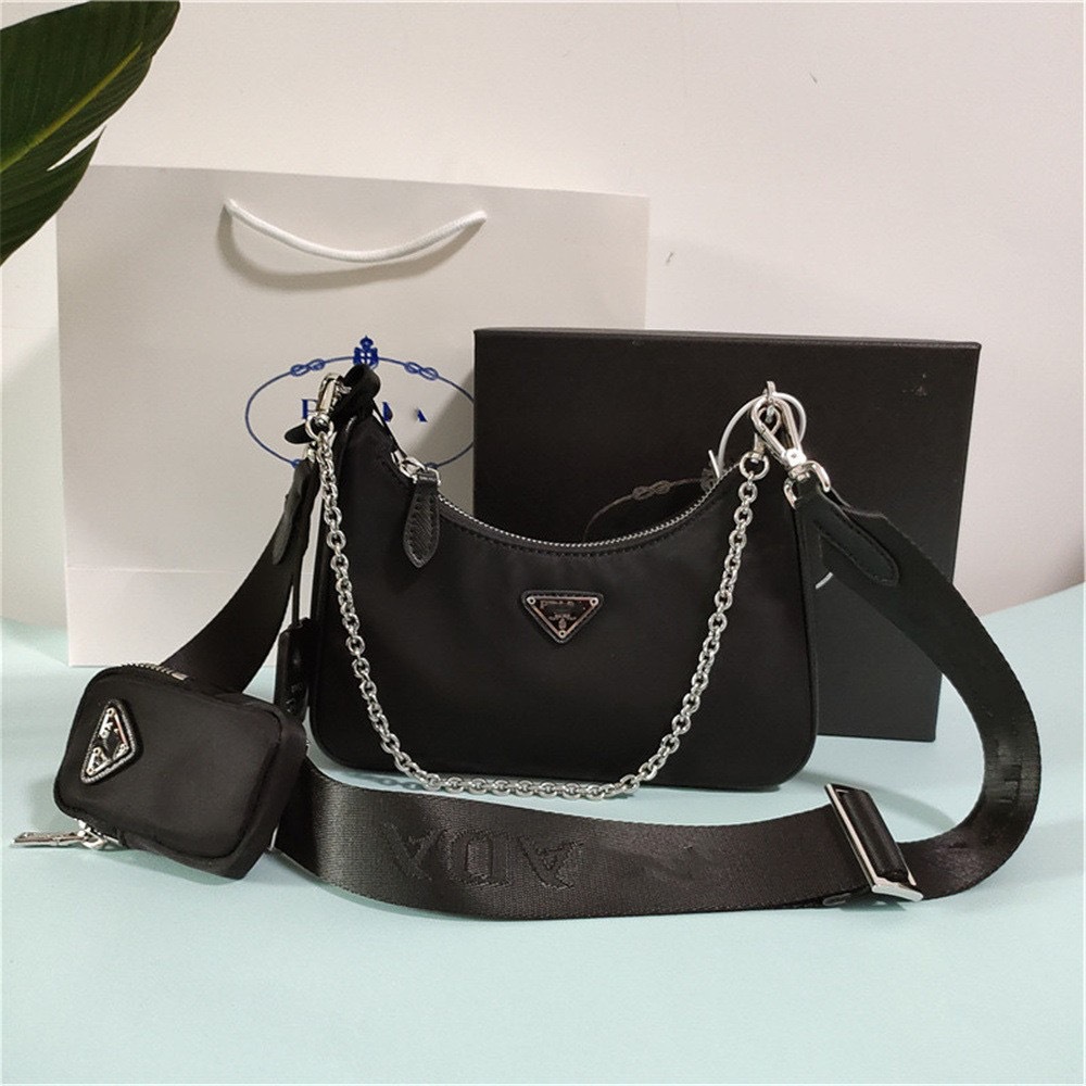 Pjia 3-in-one 여성 패션 삼각형 로고 방수 나일론 가방 호보 체인 가방 싱글 숄더 초승달 크로스 바디 백