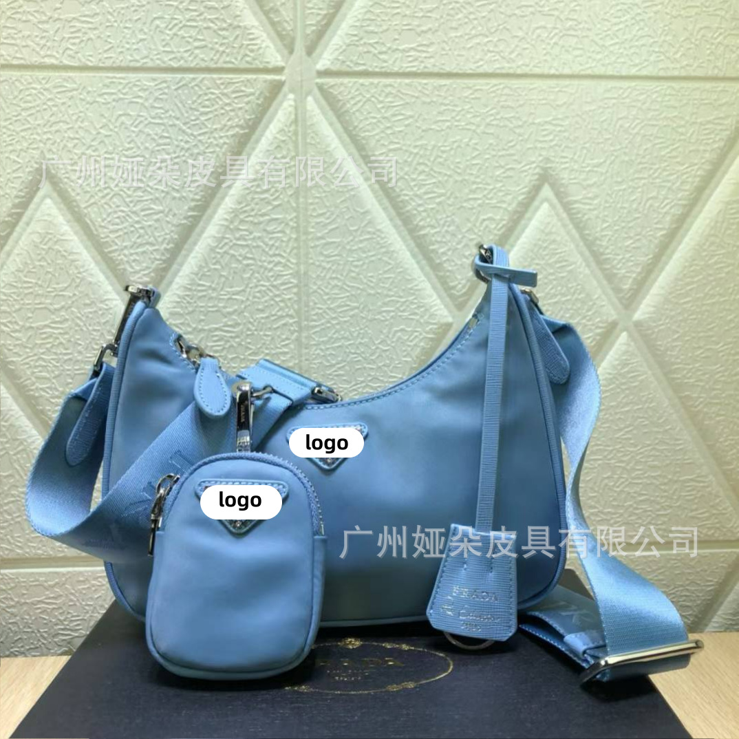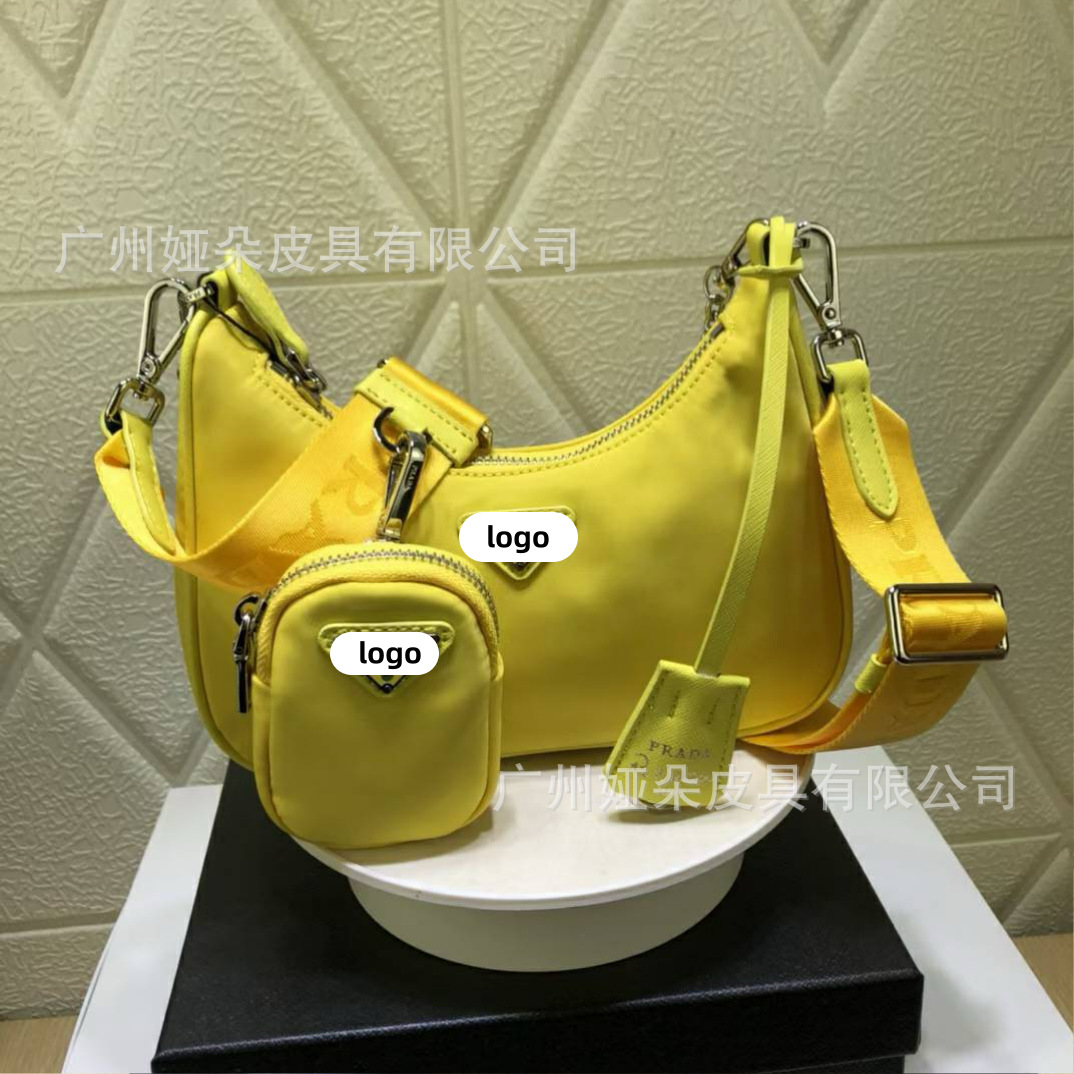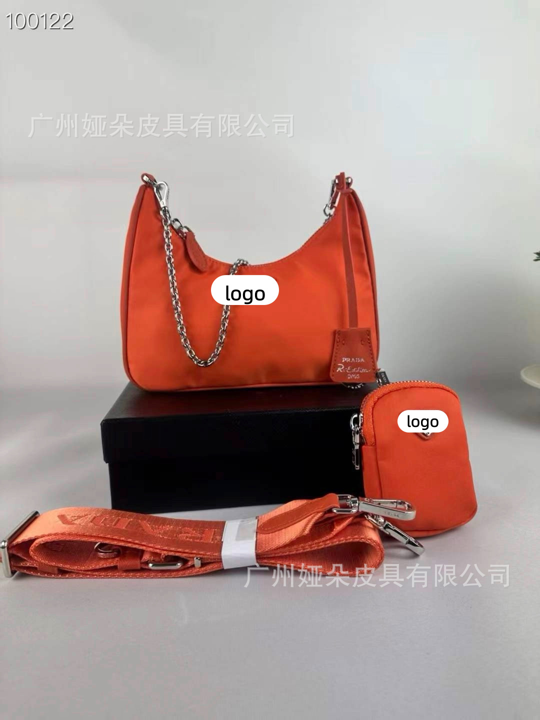 Pjia 3-in-one 여성 패션 삼각형 로고 방수 나일론 가방 호보 체인 가방 싱글 숄더 초승달 크로스 바디 백
