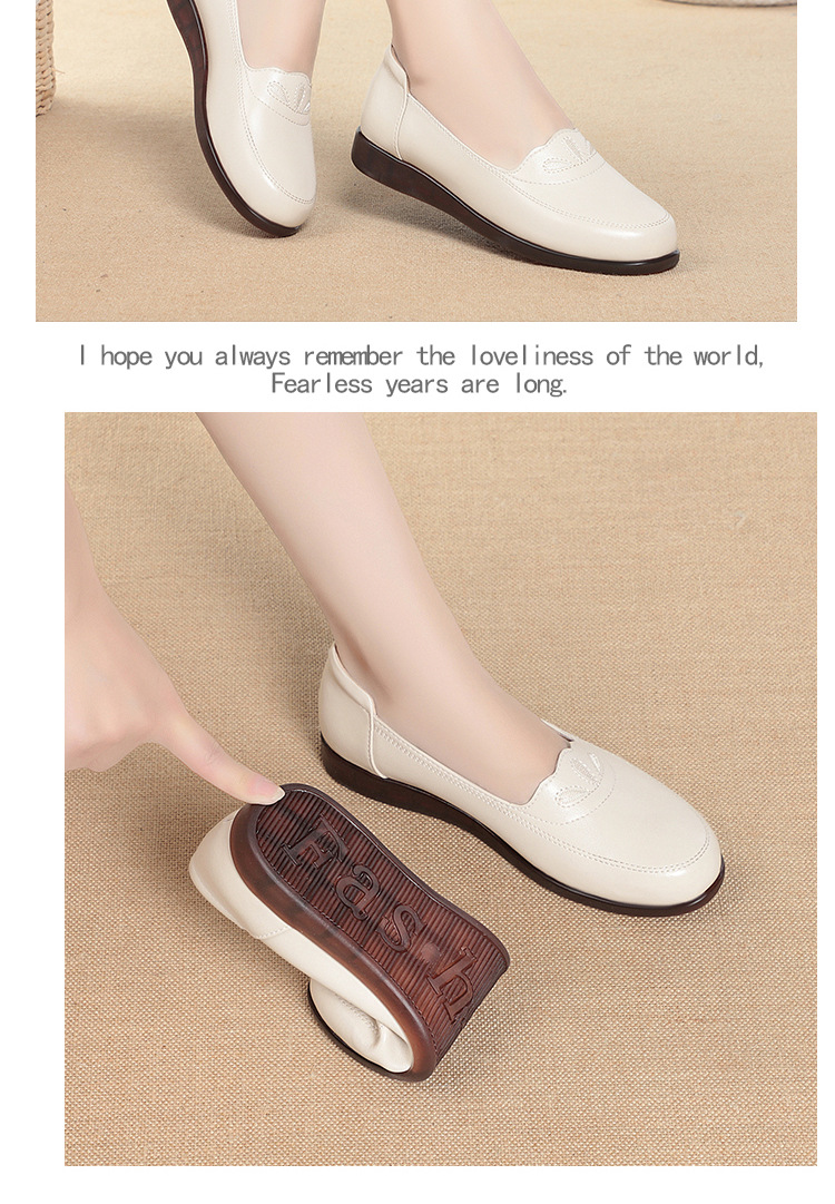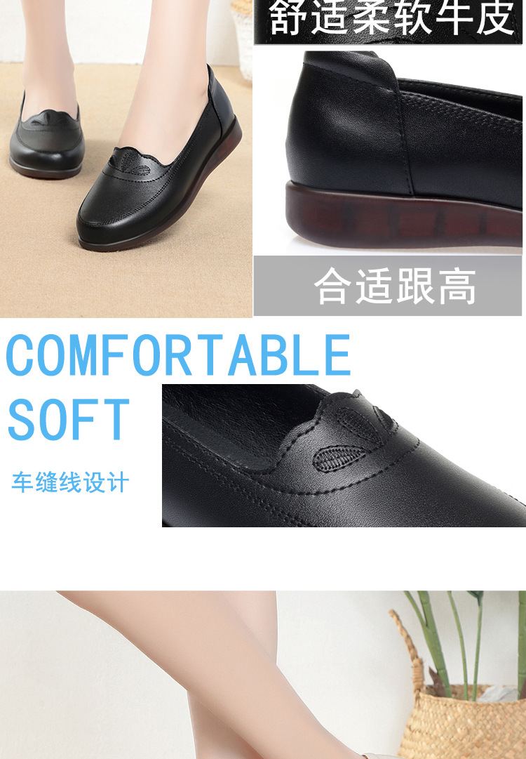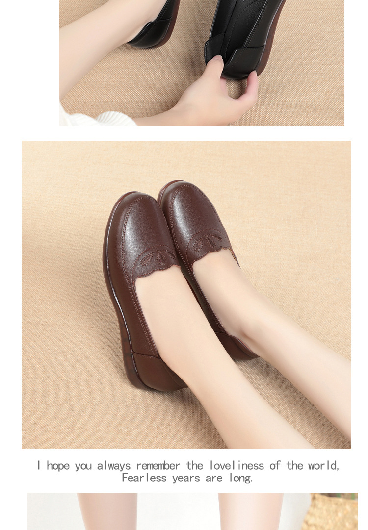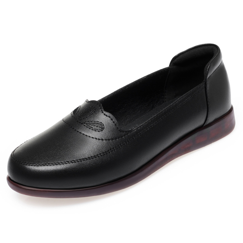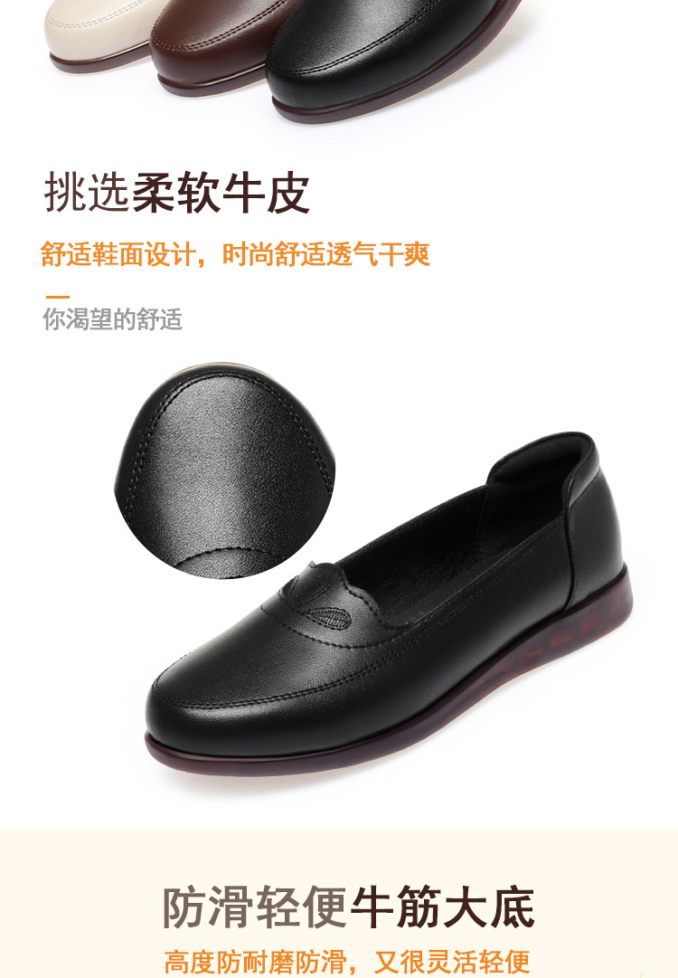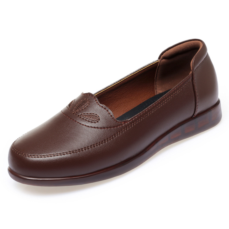 중년 및 노인 엄마를위한 봄과 가을 정품 가죽 쇠고기 단독 소프트 단독 신발 중년 싱글 레이어 신발 노인을위한 여성 신발 플랫 신발