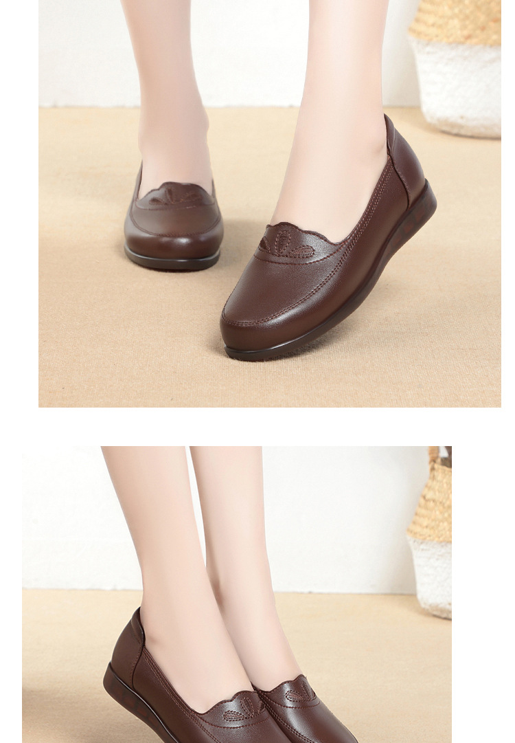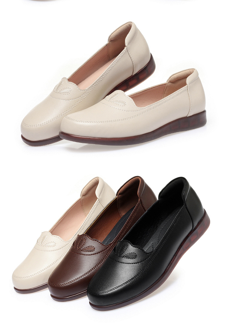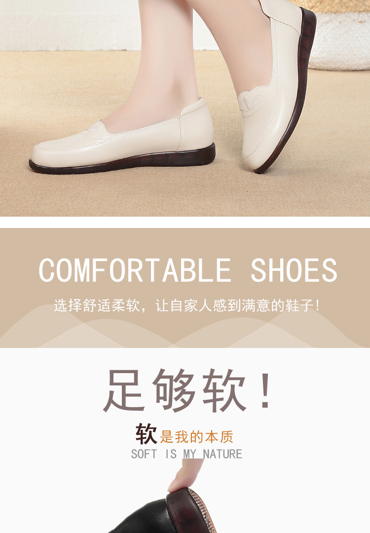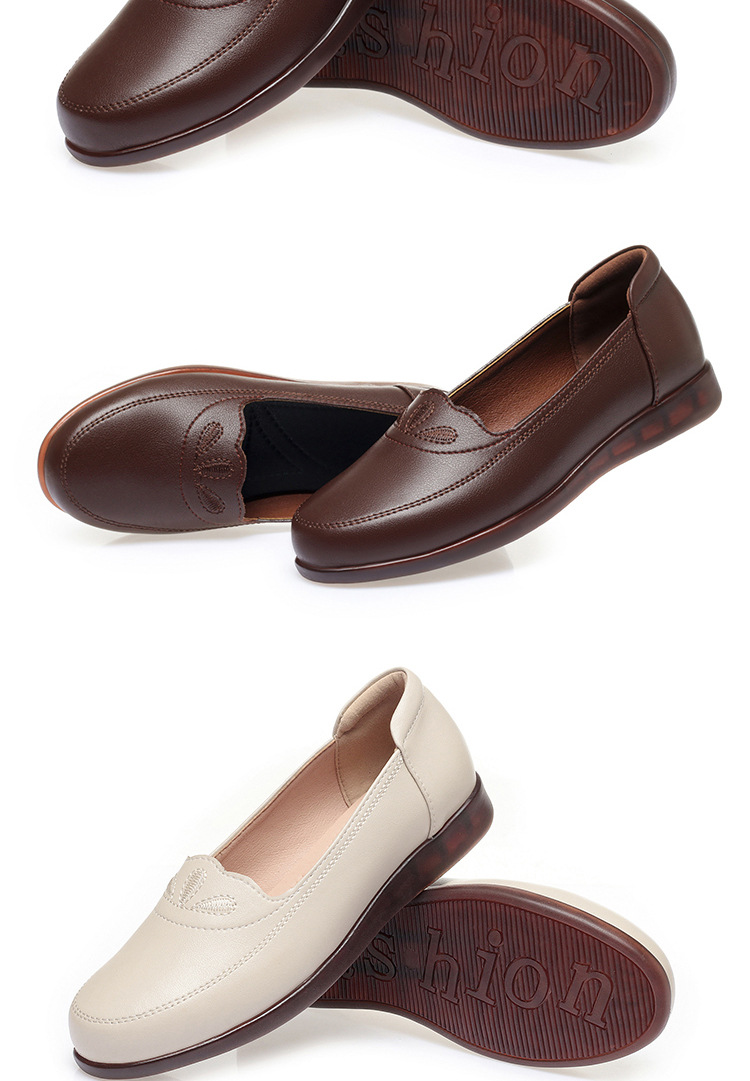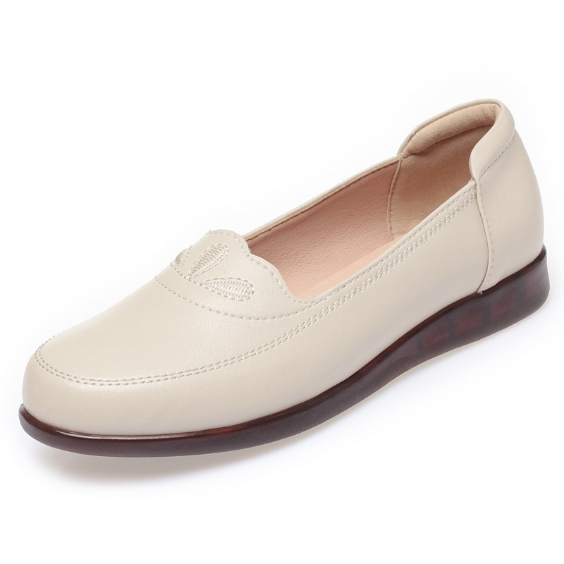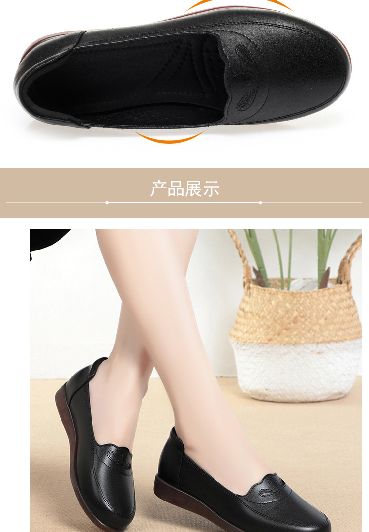 중년 및 노인 엄마를위한 봄과 가을 정품 가죽 쇠고기 단독 소프트 단독 신발 중년 싱글 레이어 신발 노인을위한 여성 신발 플랫 신발