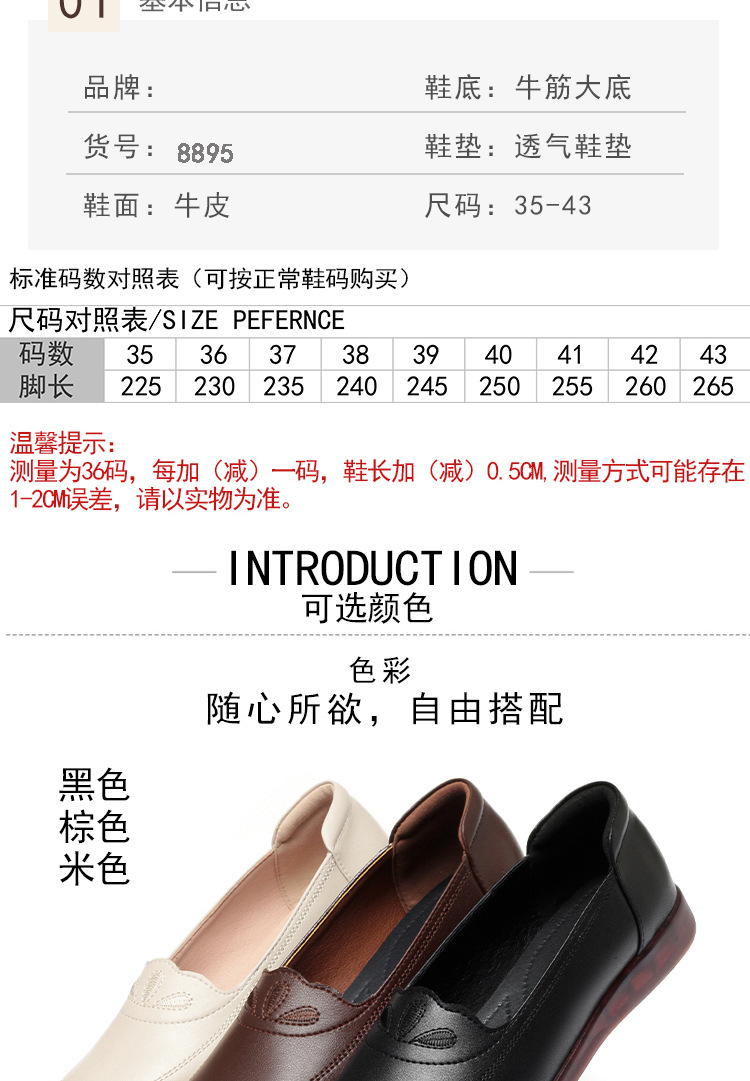 중년 및 노인 엄마를위한 봄과 가을 정품 가죽 쇠고기 단독 소프트 단독 신발 중년 싱글 레이어 신발 노인을위한 여성 신발 플랫 신발스토어 가기