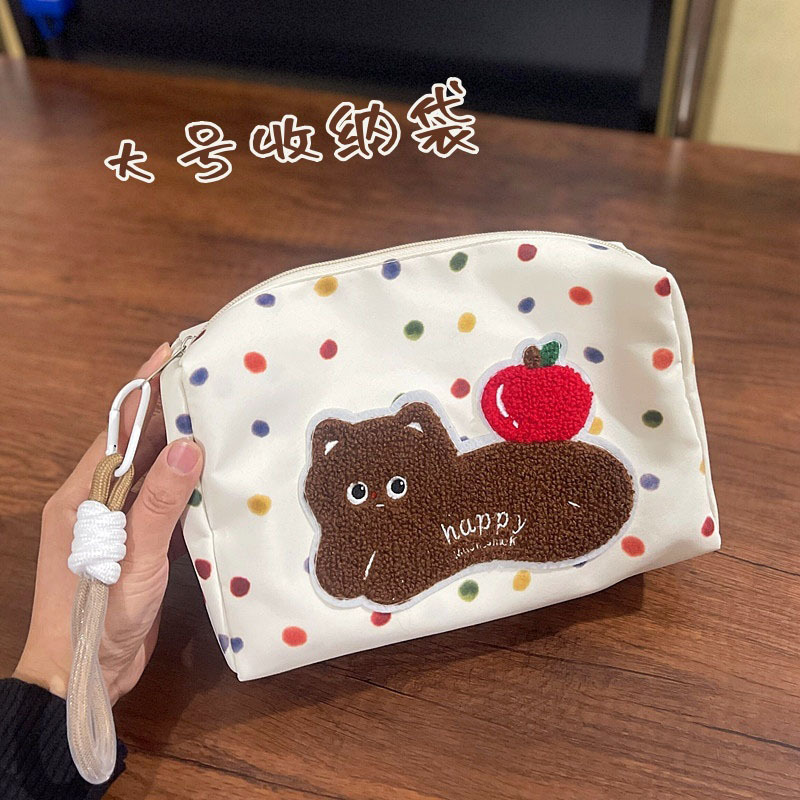 한국 귀여운 새끼 고양이 화장품 가방 자수 만화 저장 가방 여행 피델리티 가방 손 가방 쇼핑 손 가방 여성 손 가방