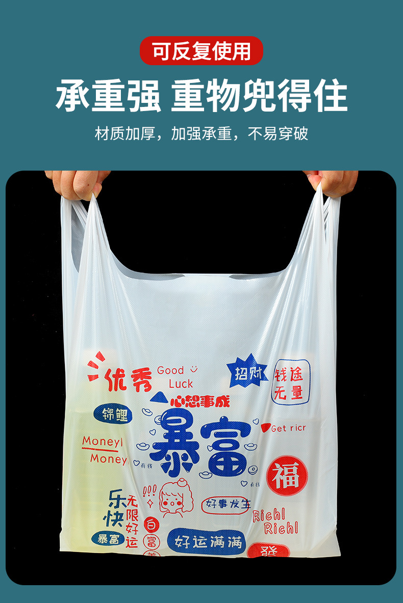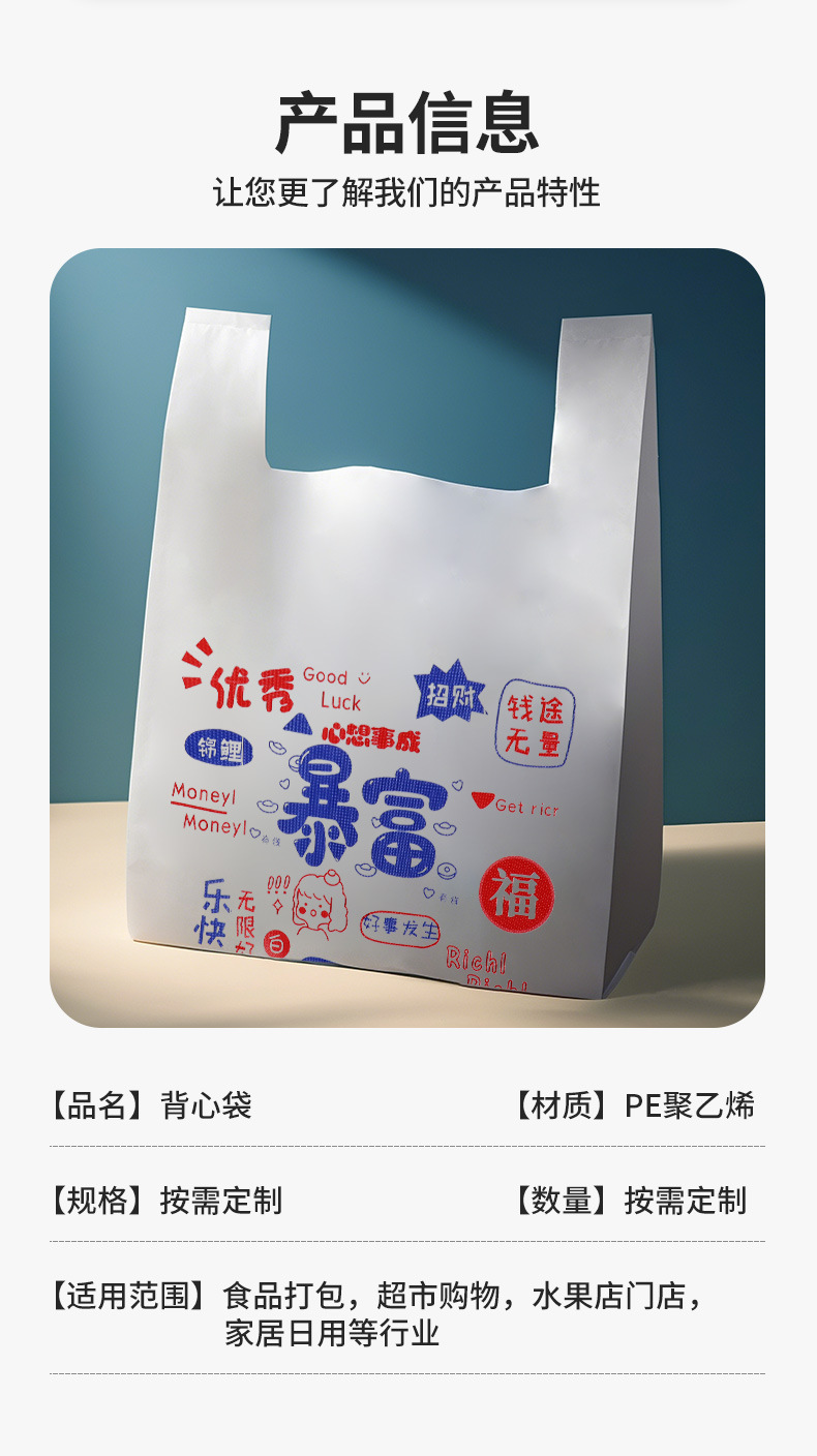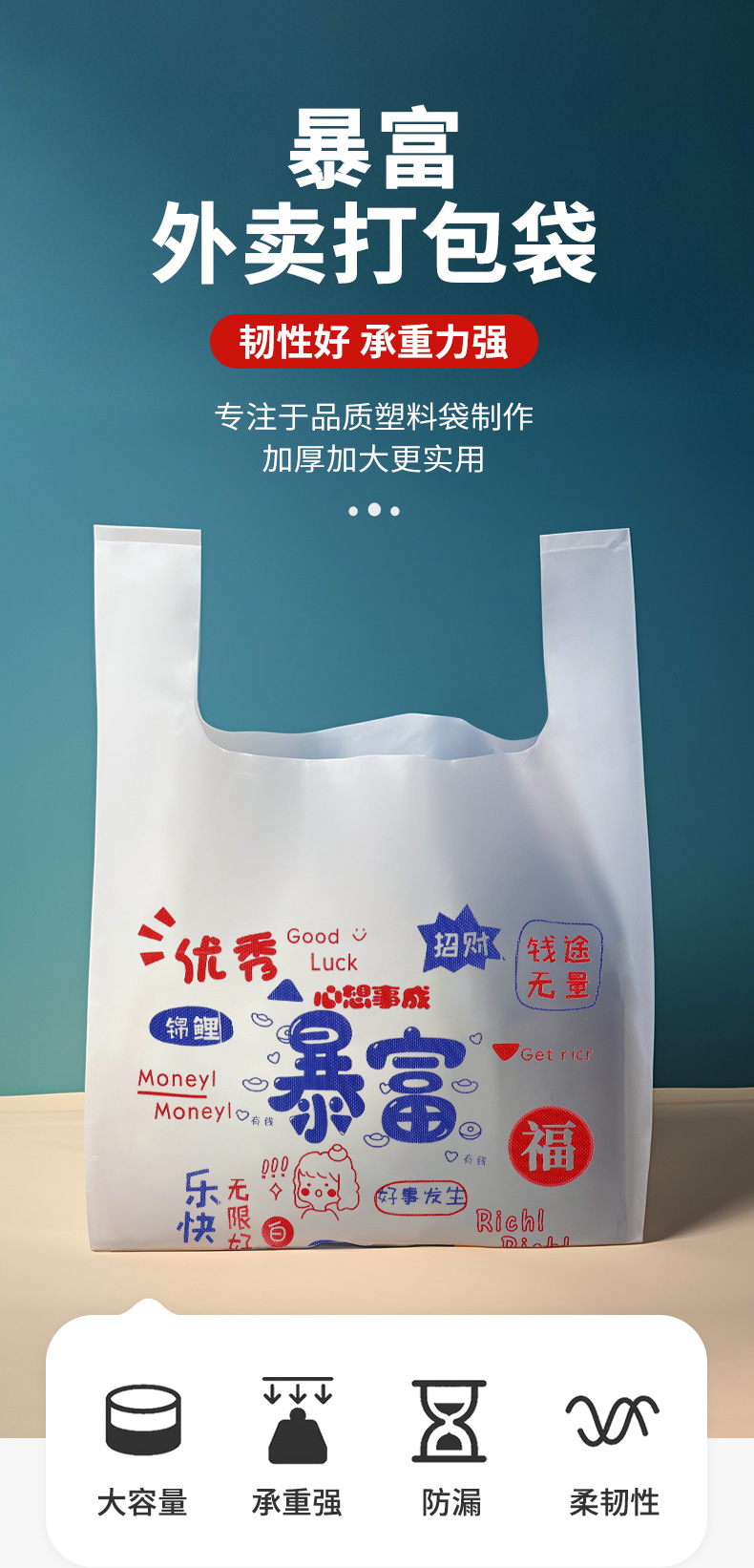풍부한 인쇄 테이크 아웃 덤핑 백 슈퍼마켓 케이터링 베이킹 과일 쇼핑 조끼 가방 휴대용 비닐 봉투