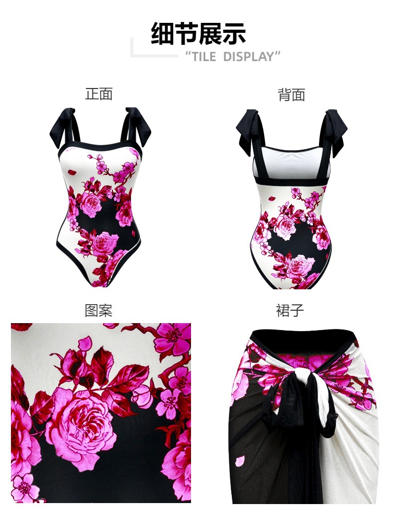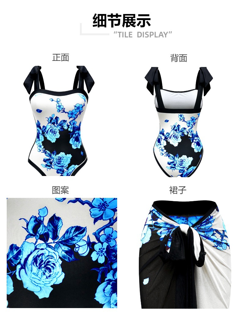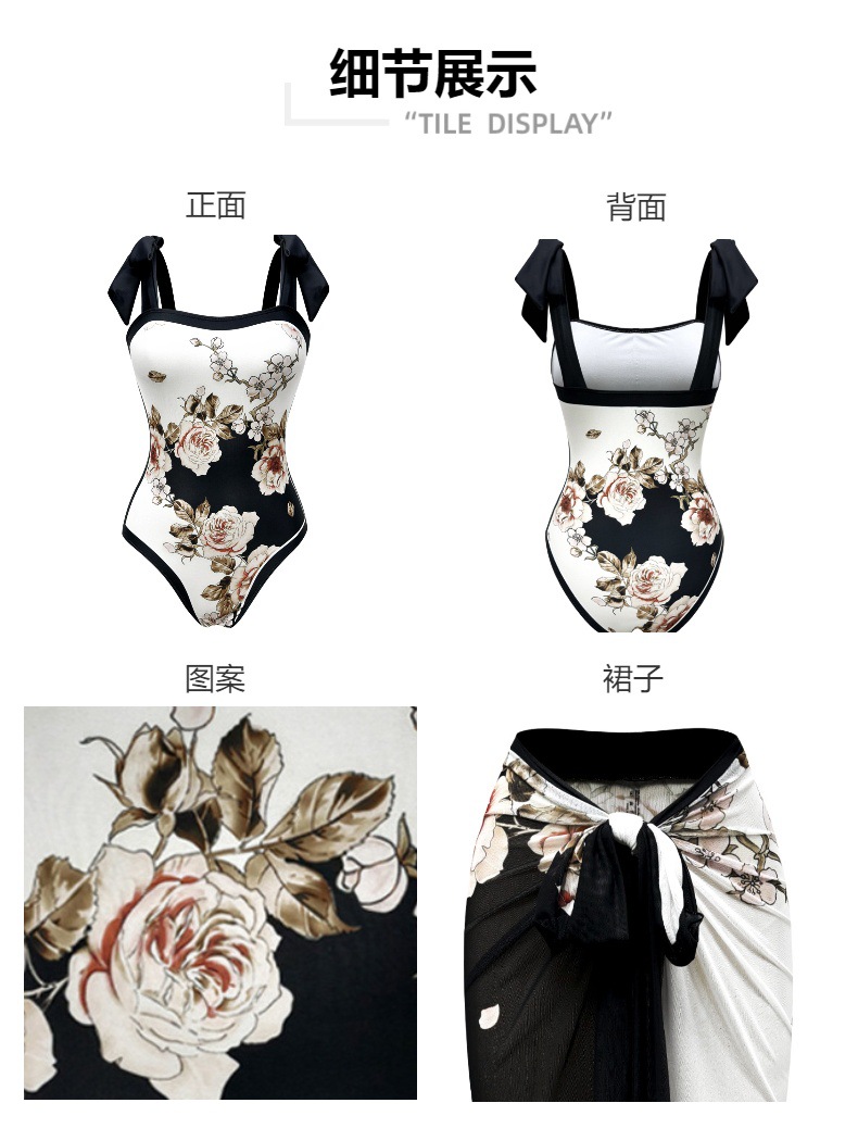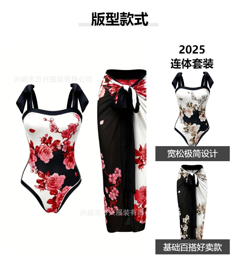 2025 레트로 유럽 및 미국 스타일 수출용 수영복, 보수적인 원피스 섹시 수영복, 여성용 크로스보더 투피스 바디슈트 원피스형스토어 가기
