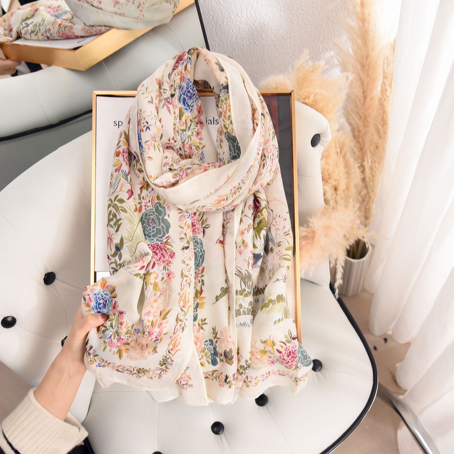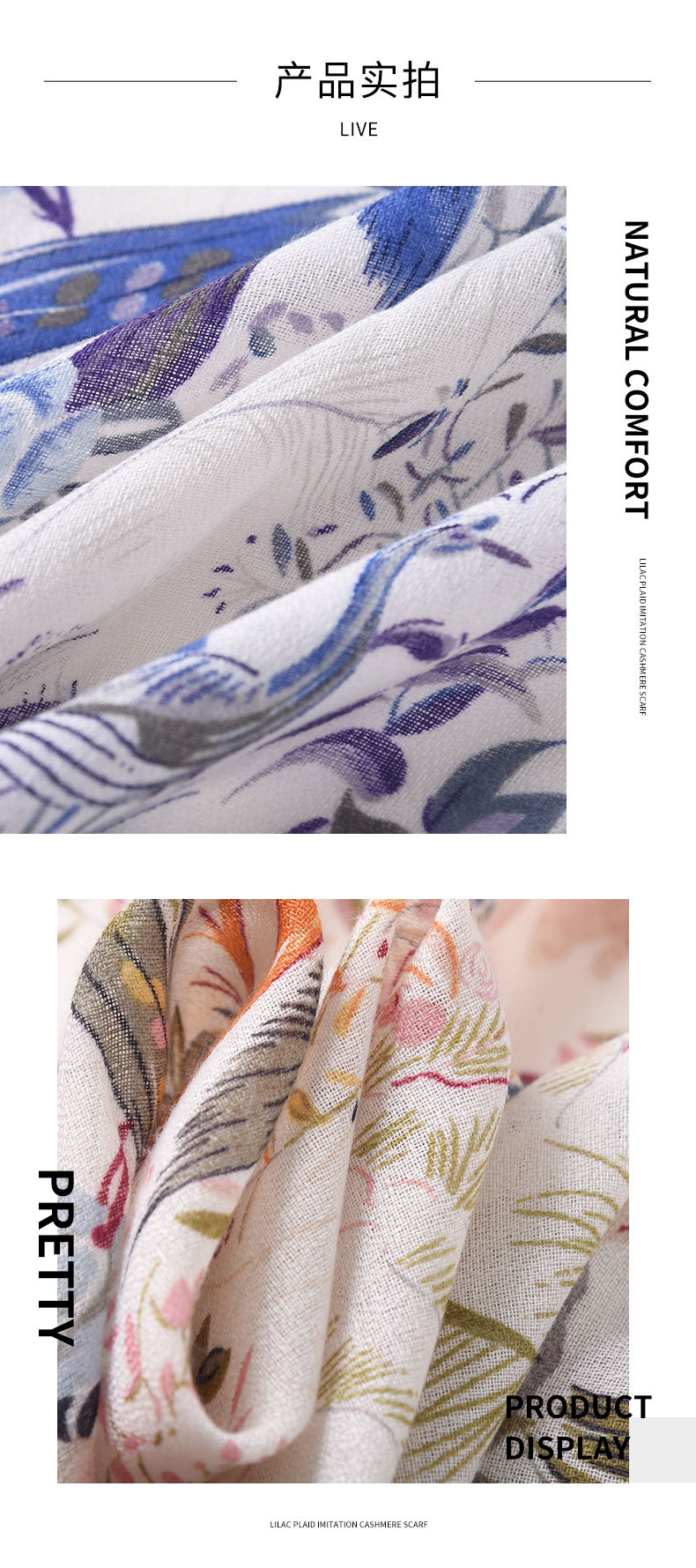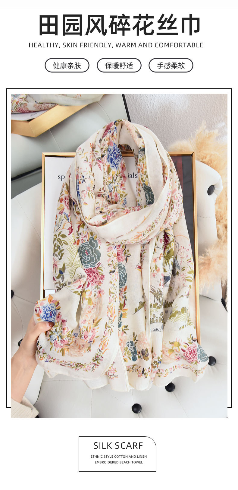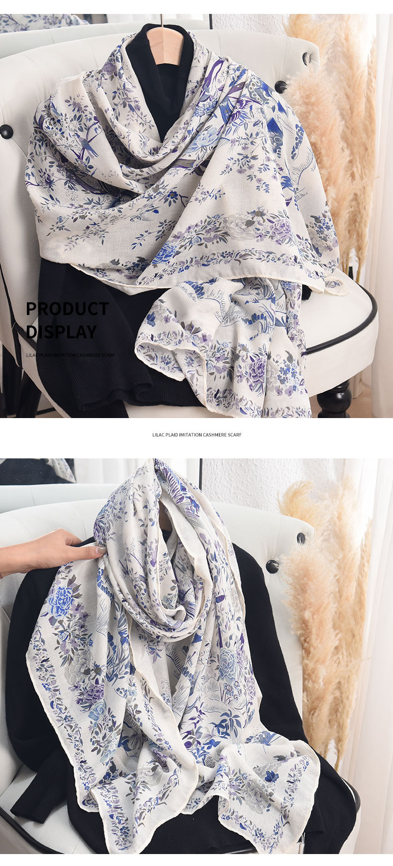 얇은 틈새 모조 면 및 리넨 목장 인쇄 스카프 일본과 한국 여성의 세련된 우아한 목도리 고급 휴일 선물