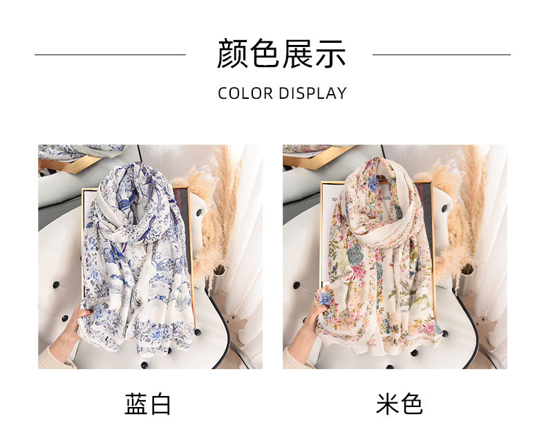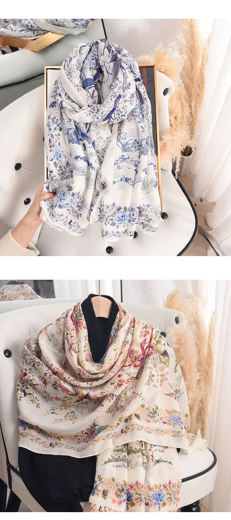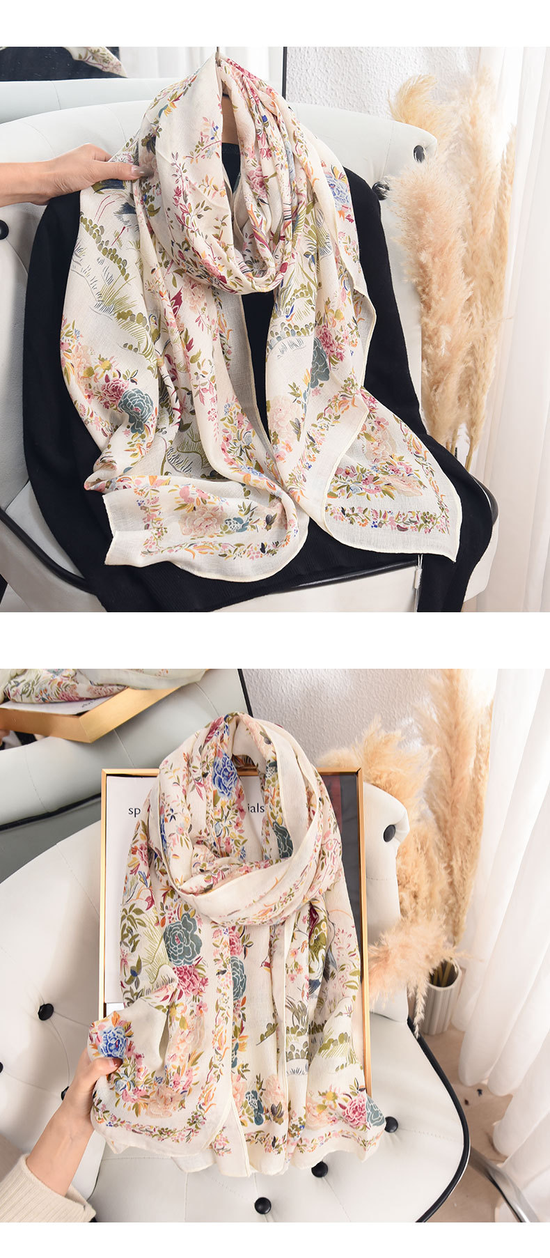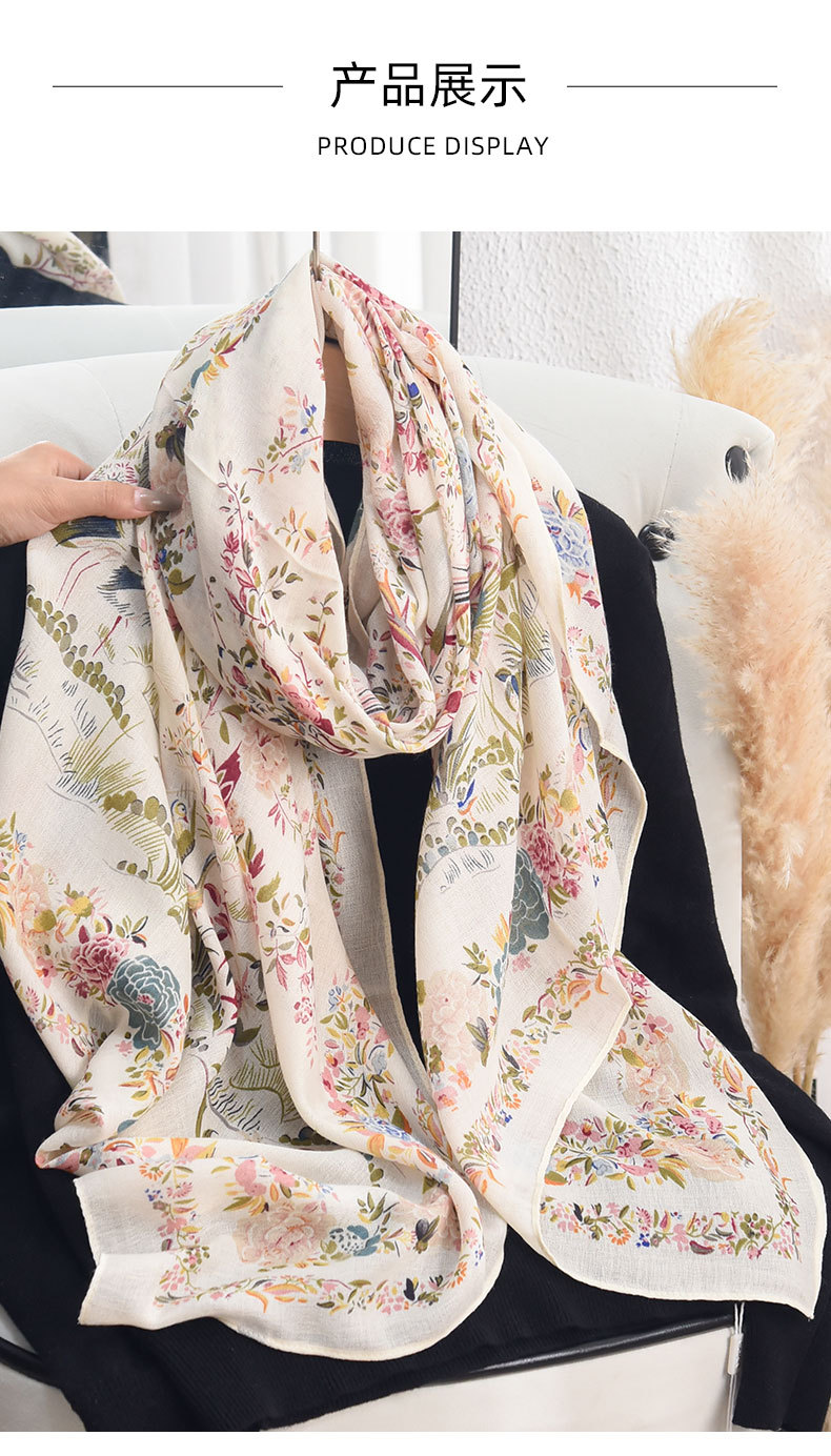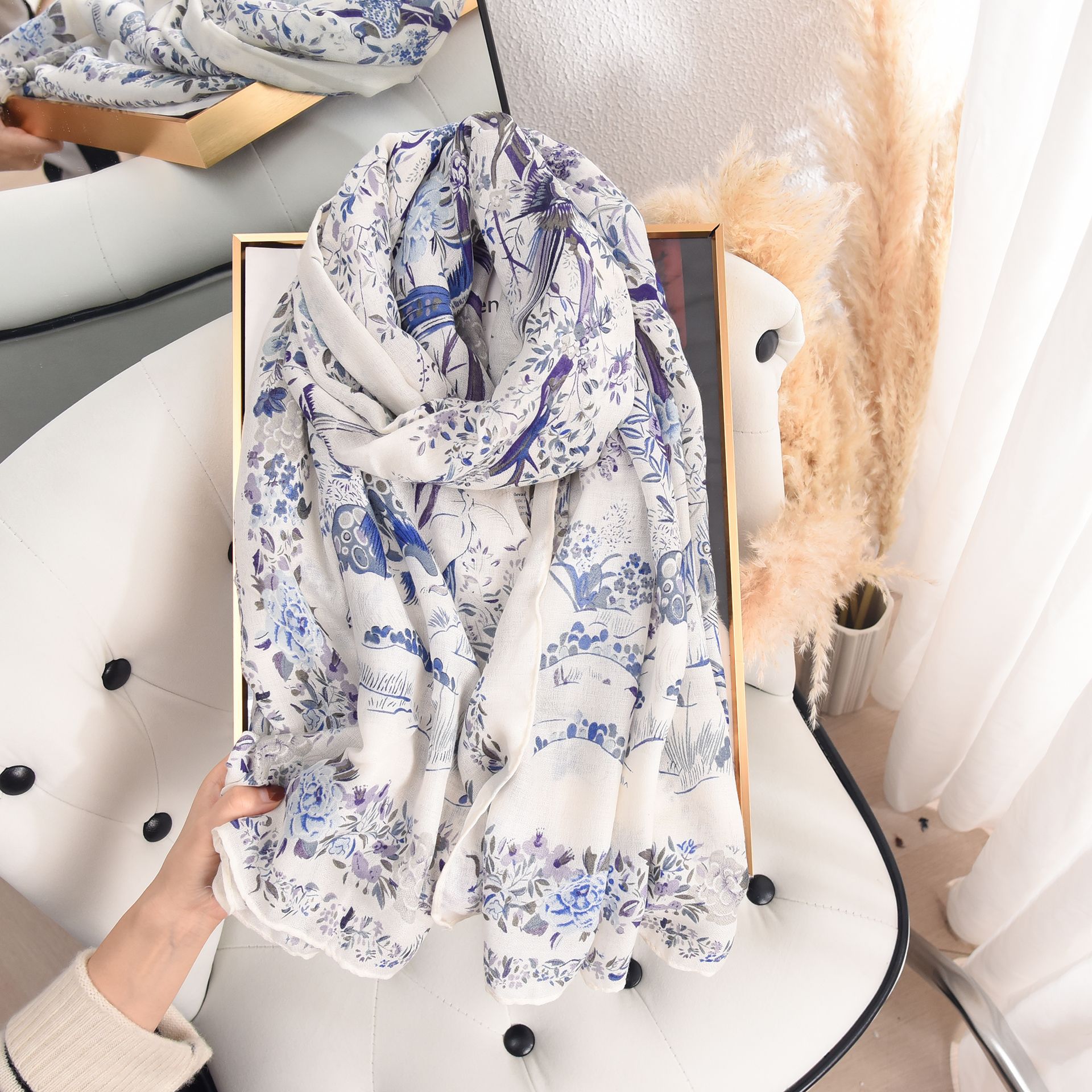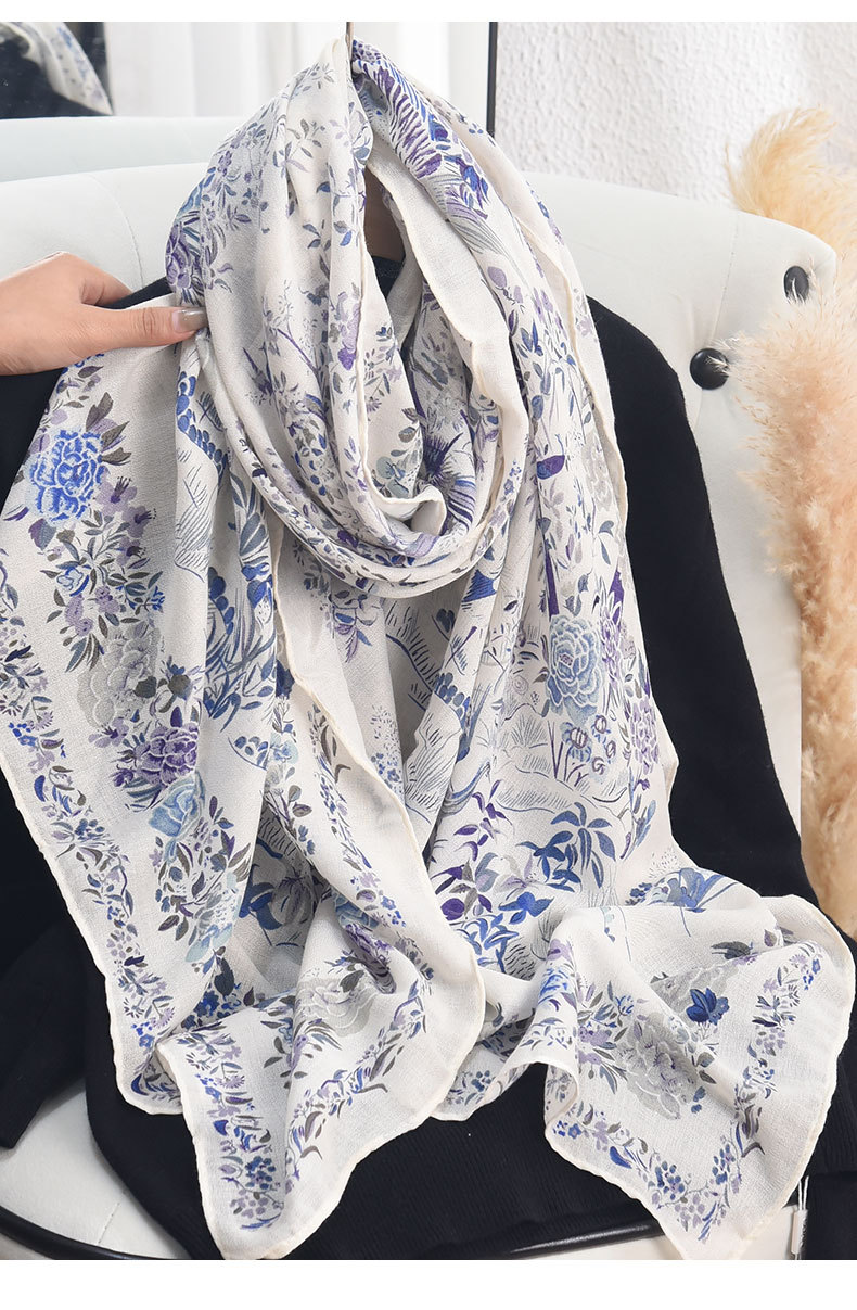 얇은 틈새 모조 면 및 리넨 목장 인쇄 스카프 일본과 한국 여성의 세련된 우아한 목도리 고급 휴일 선물스토어 가기