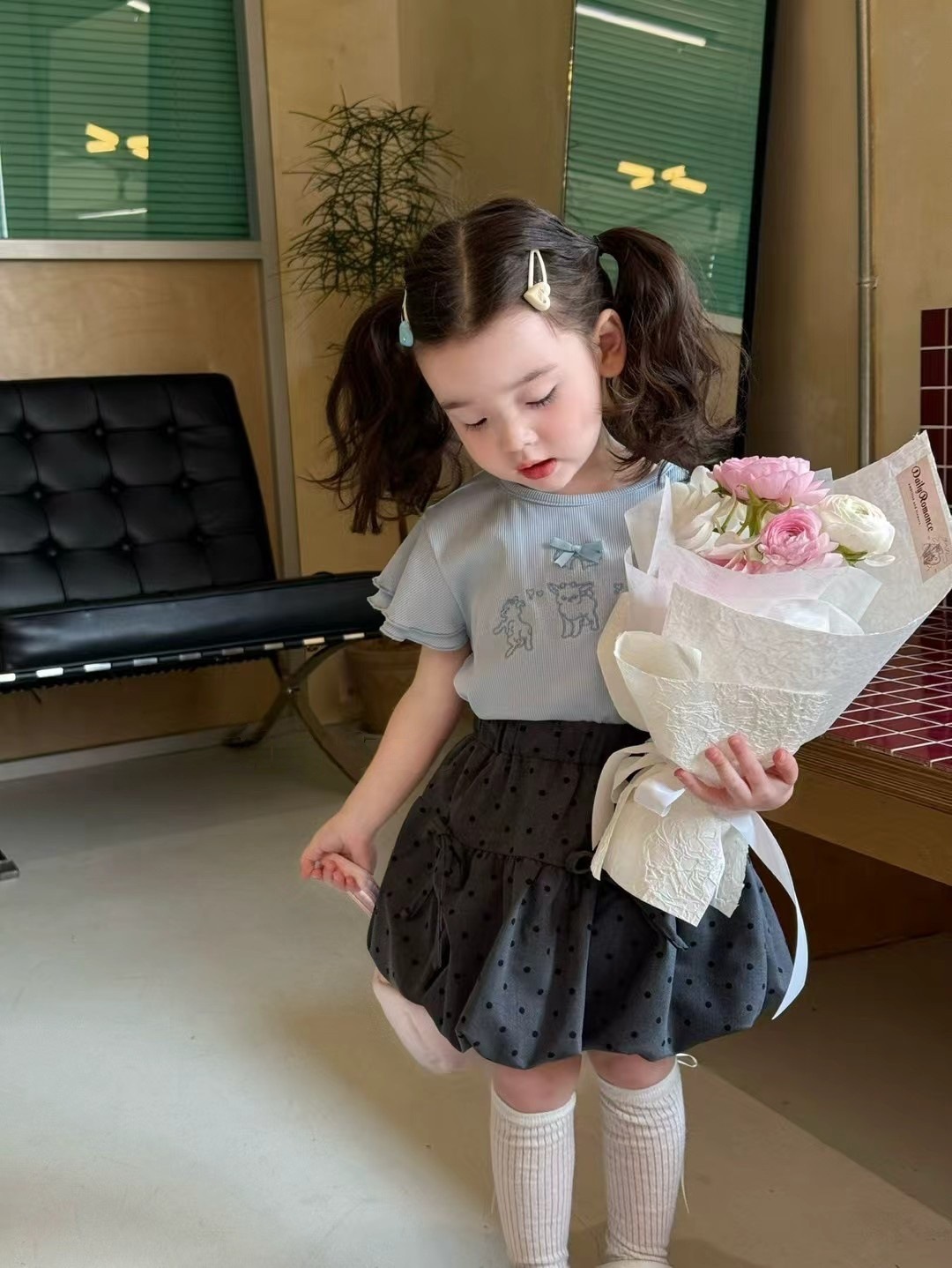 2025 여자 여름 한국 스타일 달콤한 자수 만화 활 티셔츠 여성용 Ruffled 귀여운 편안한 탑스토어 가기
