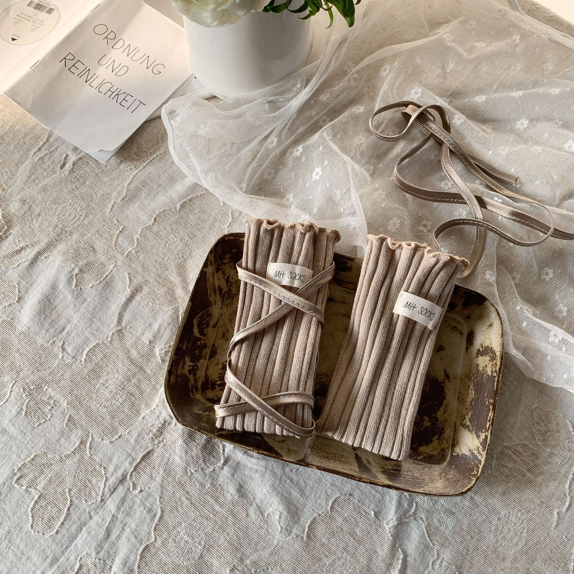 • 카키색 스트랩 스타킹