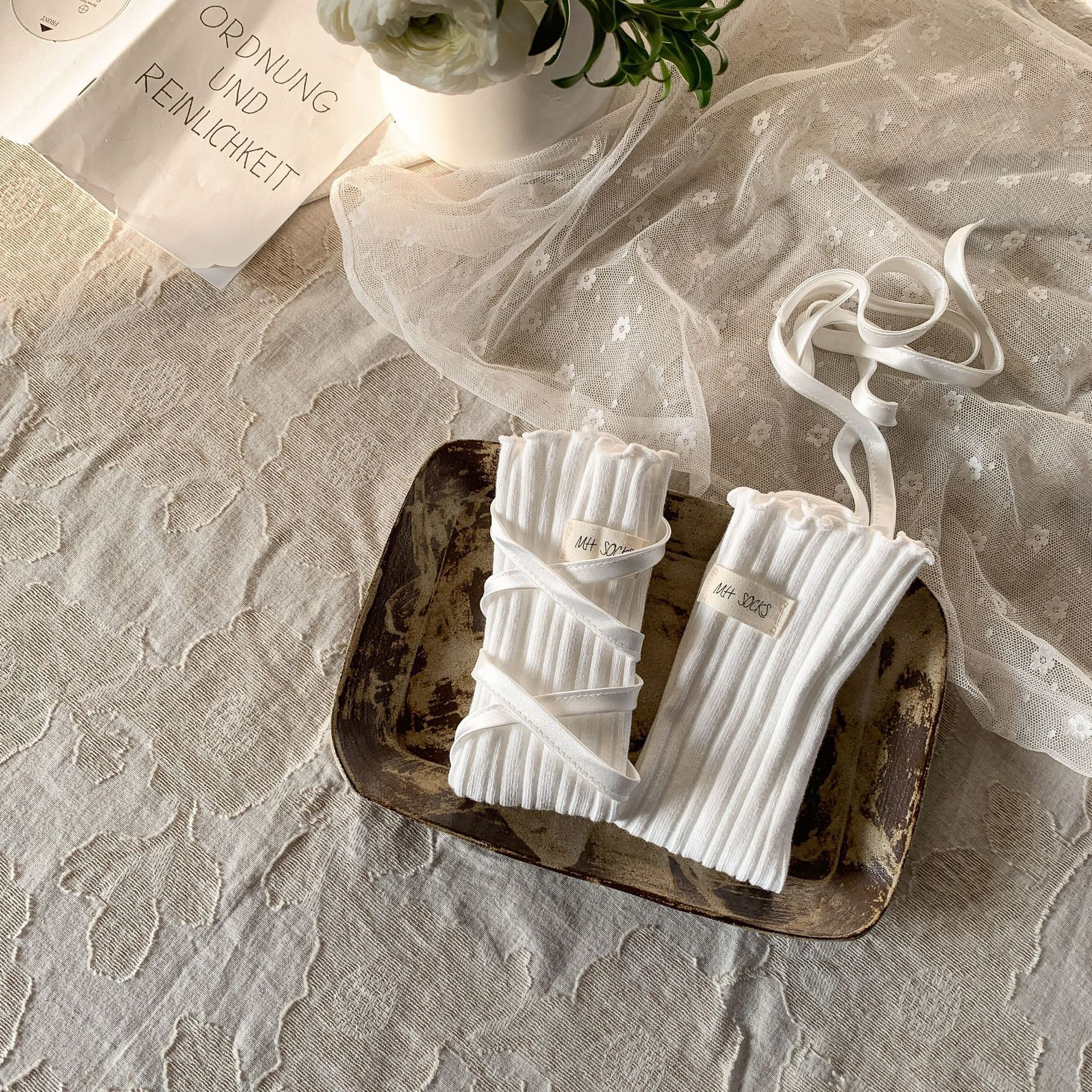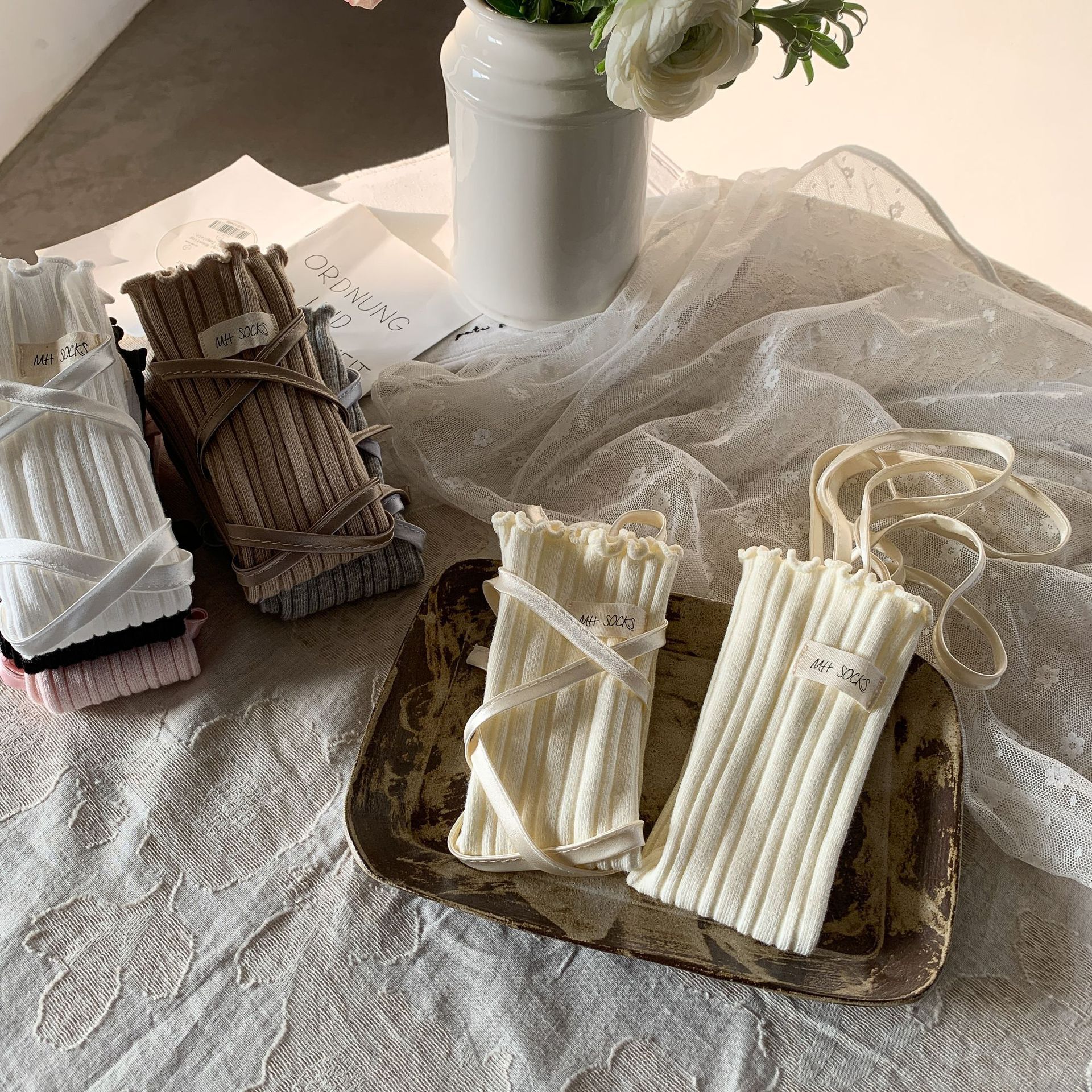 • 흰색 끈끈한 스타킹