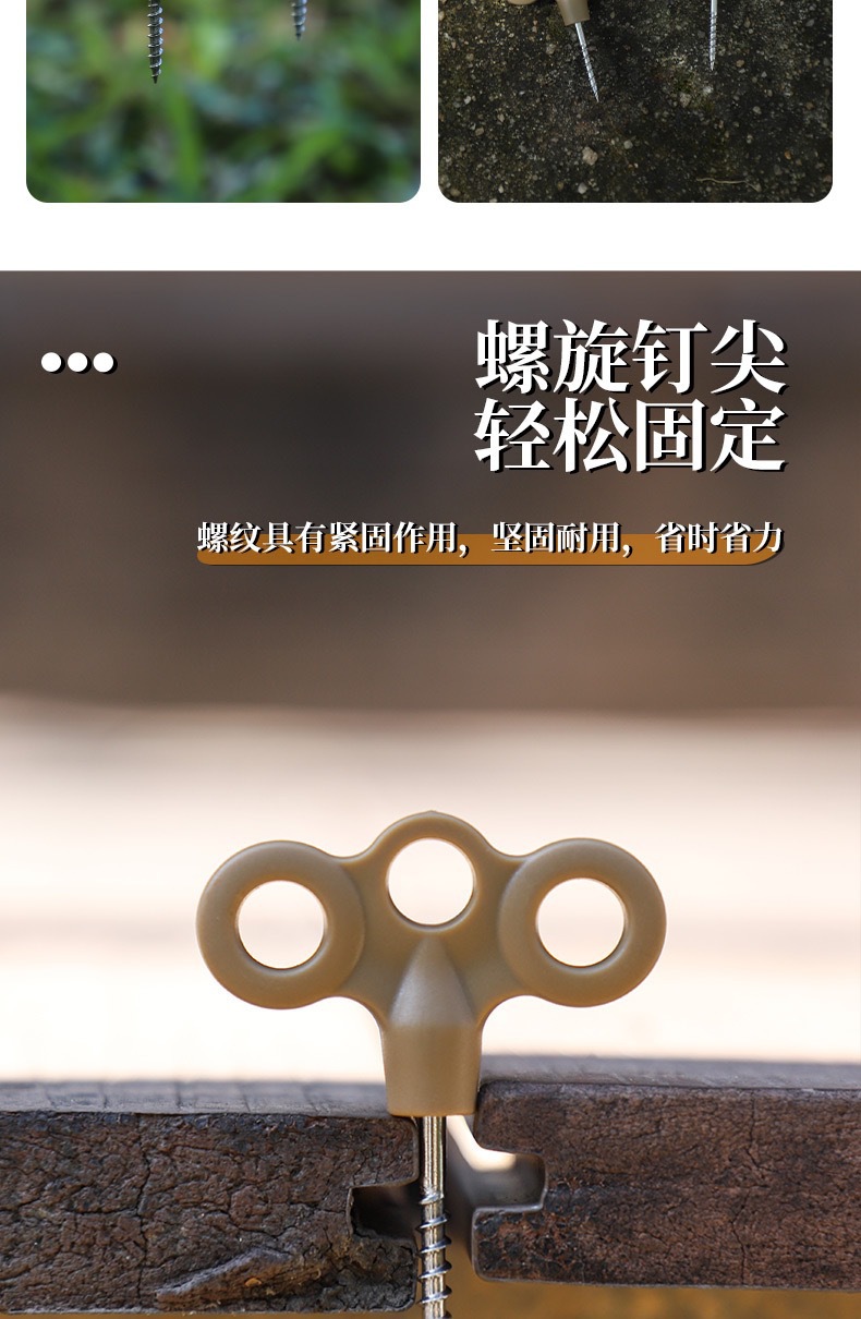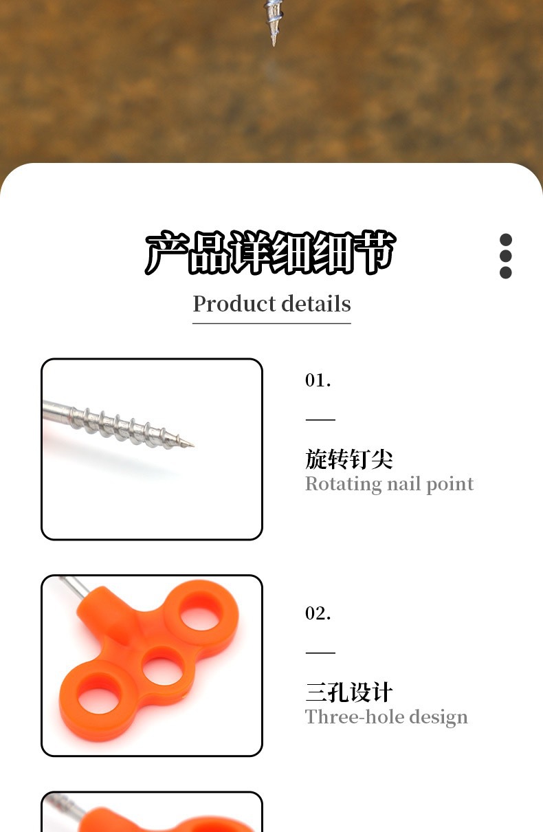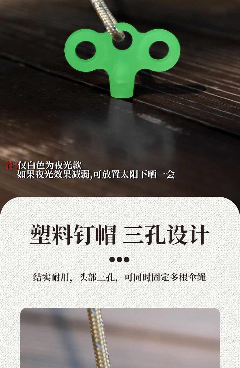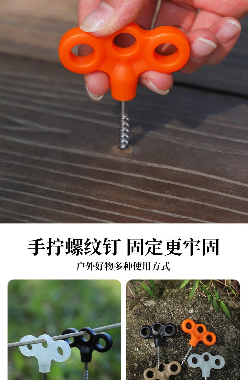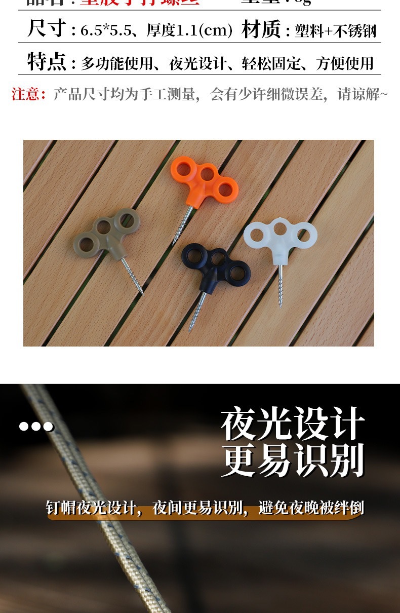 야외 플라스틱 그라운드 네일 빛나는 텐트 캠핑 방풍 로프 고정 버클 세 눈 스테인레스 스틸 스레드 그라운드 네일 도매스토어 가기