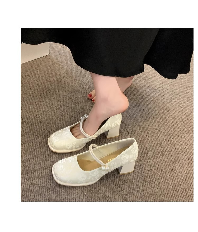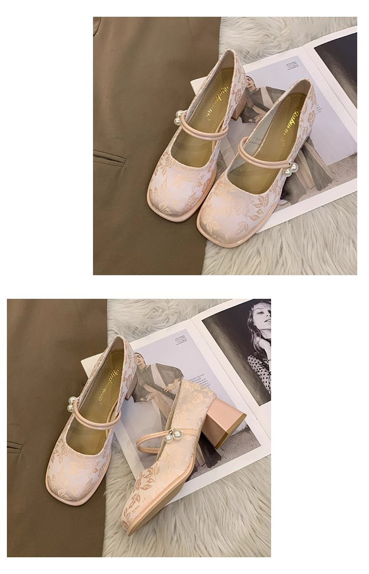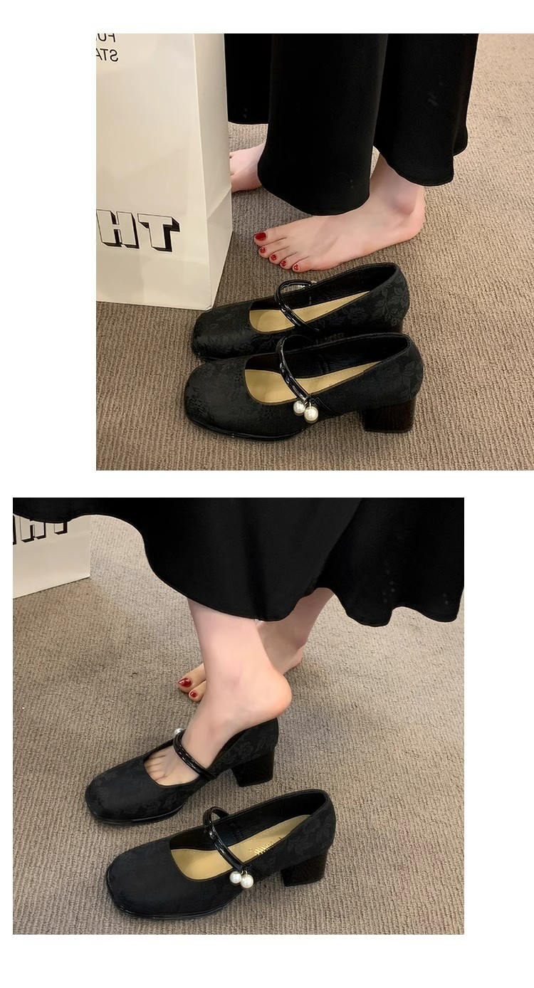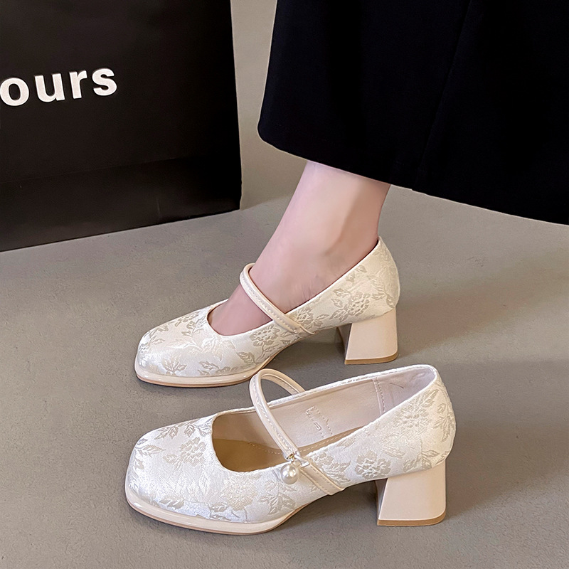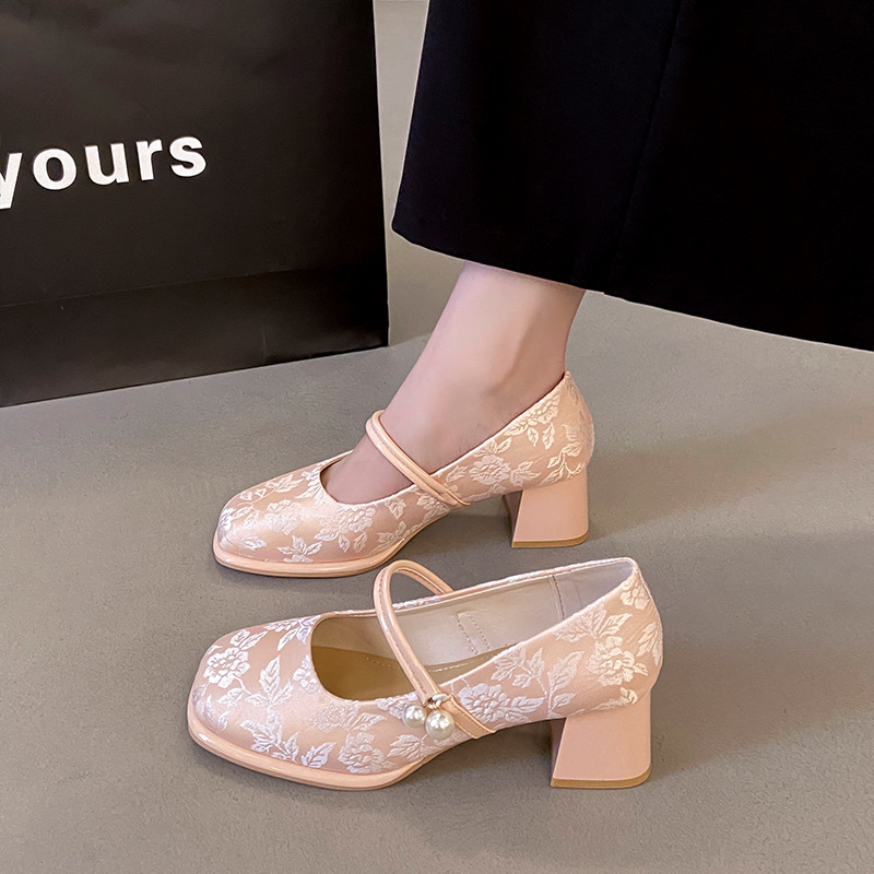 새로운 중국 신발 여성 두꺼운 굽 신발 봄 청삼 신발 2025 말 얼굴 스커트 올매치 하이힐로 새로운 도착
