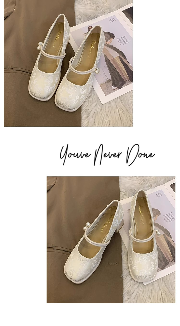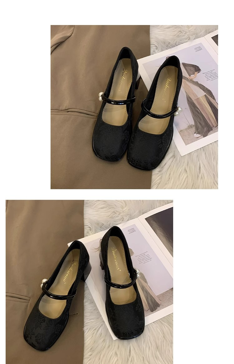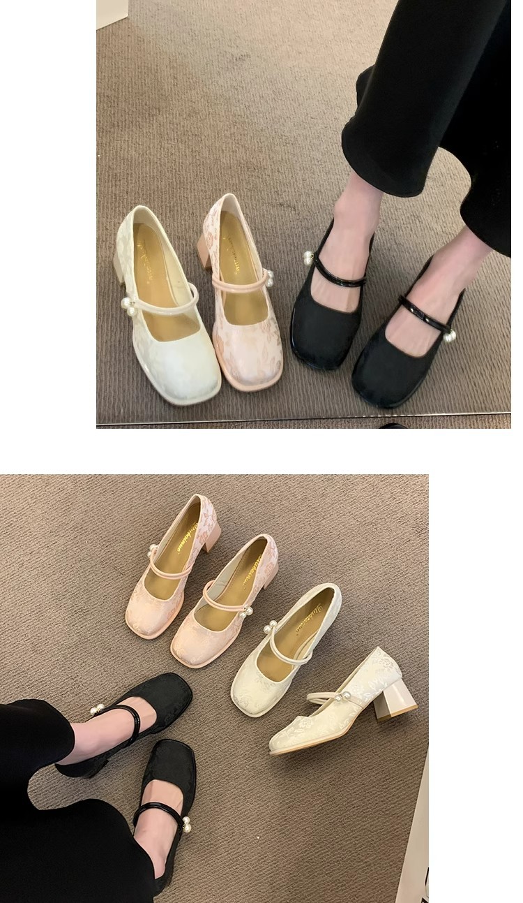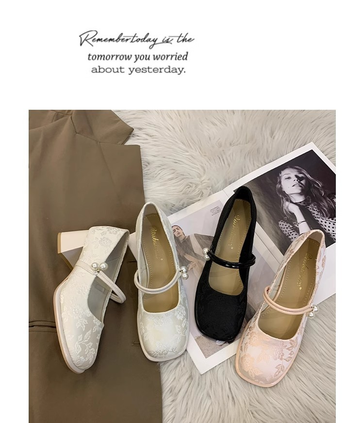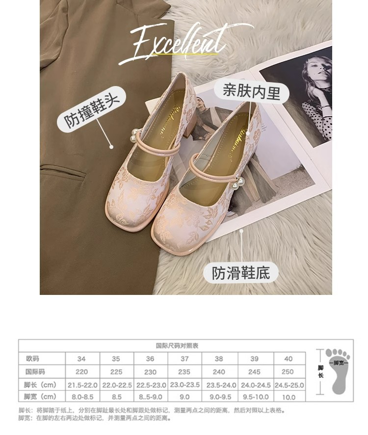 새로운 중국 신발 여성 두꺼운 굽 신발 봄 청삼 신발 2025 말 얼굴 스커트 올매치 하이힐로 새로운 도착