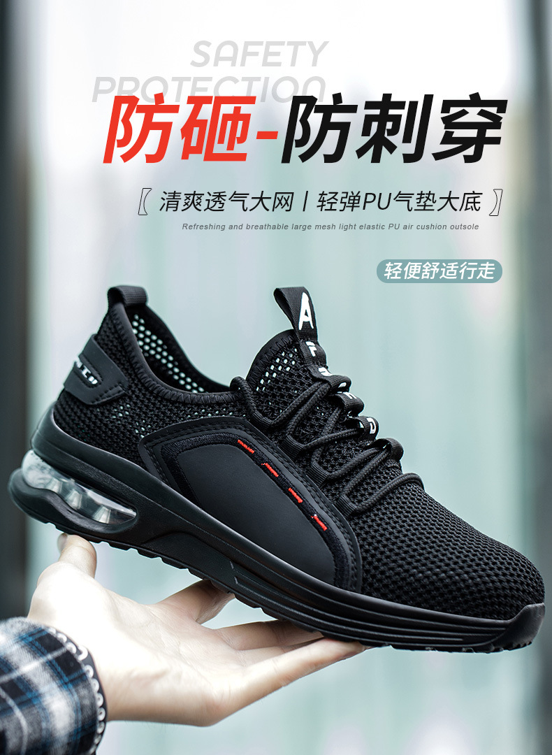 국경 간 아마존 공급 안전 노동 보호 신발 플라이 짠 통기성 안티 스매싱 안티 스매싱 보호 신발 고무 단독 미끄럼 방지 신발스토어 가기