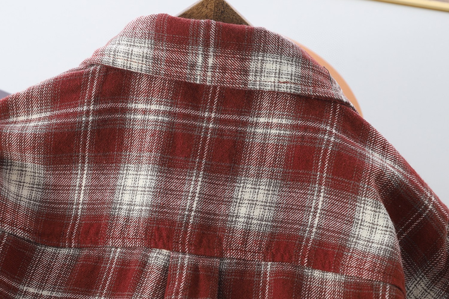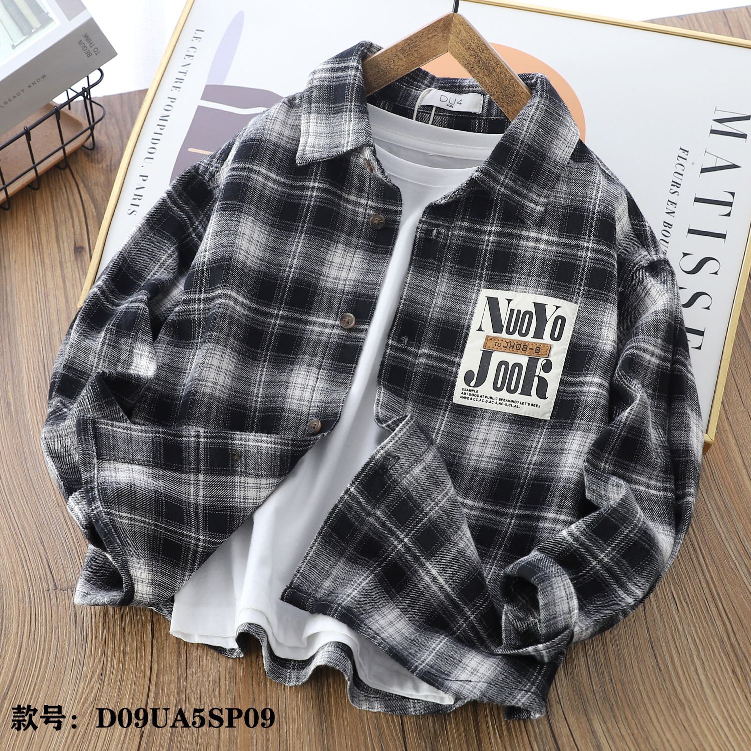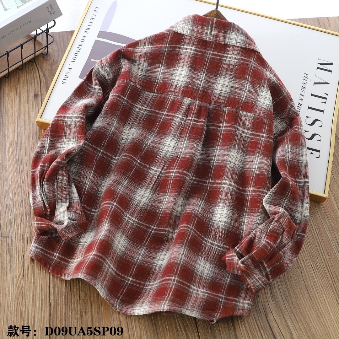 남자와 여자의 셔츠 코트 2025 봄과 가을 새로운 긴 소매 어린이 옷깃 셔츠 격자 착용스토어 가기