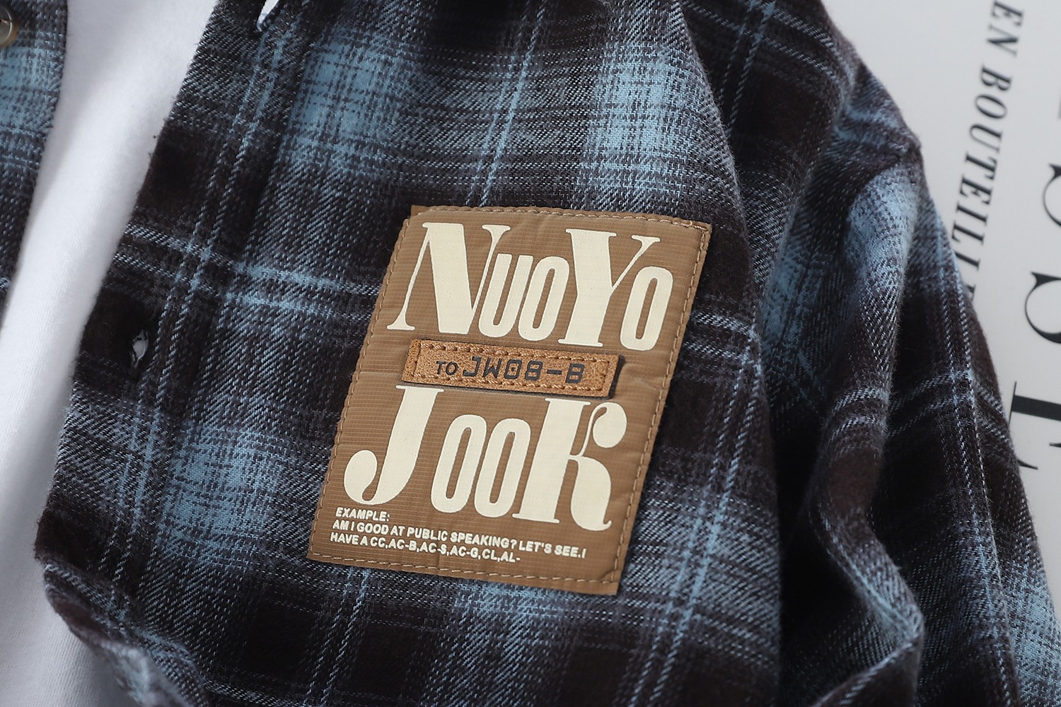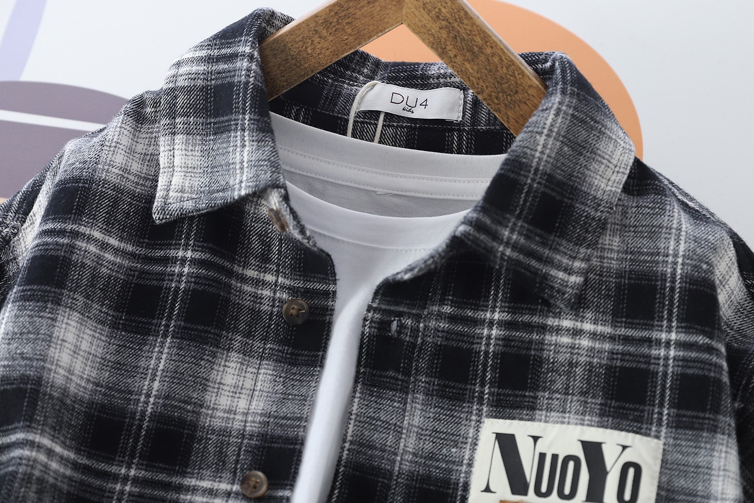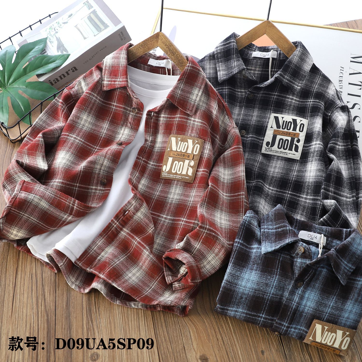 남자와 여자의 셔츠 코트 2025 봄과 가을 새로운 긴 소매 어린이 옷깃 셔츠 격자 착용스토어 가기