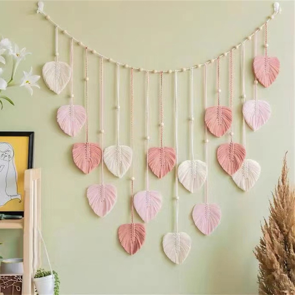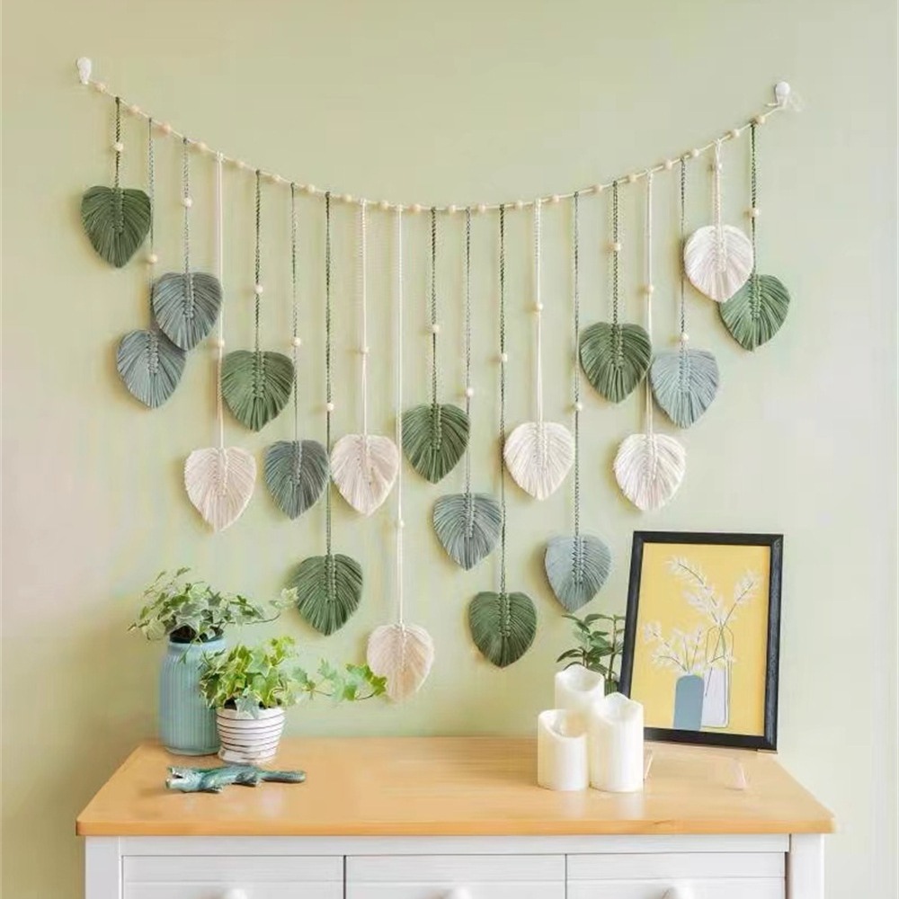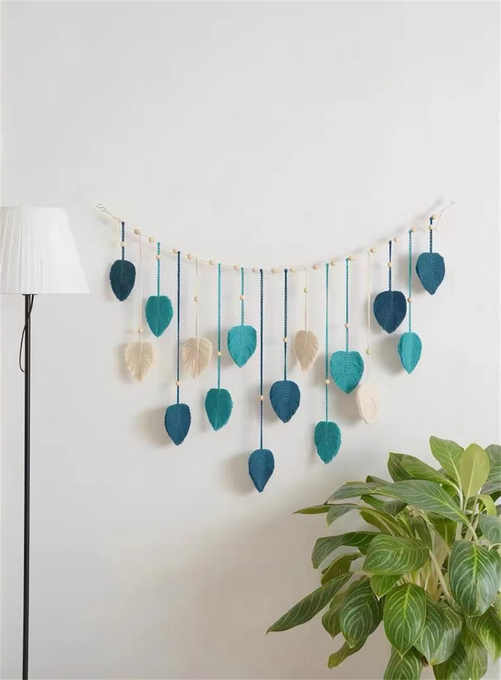 북유럽 스타일의 보헤미안 코튼 로프 수제 나무 구슬 잎 사진 벽 교수형 태피스트리 술 벽 교수형스토어 가기