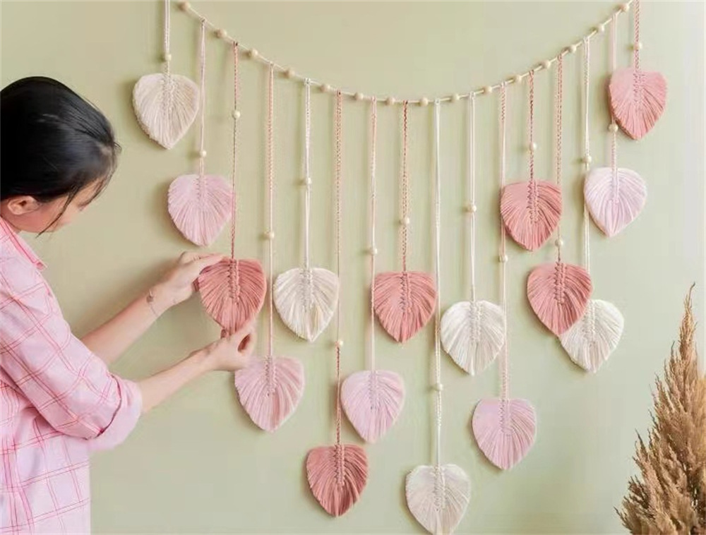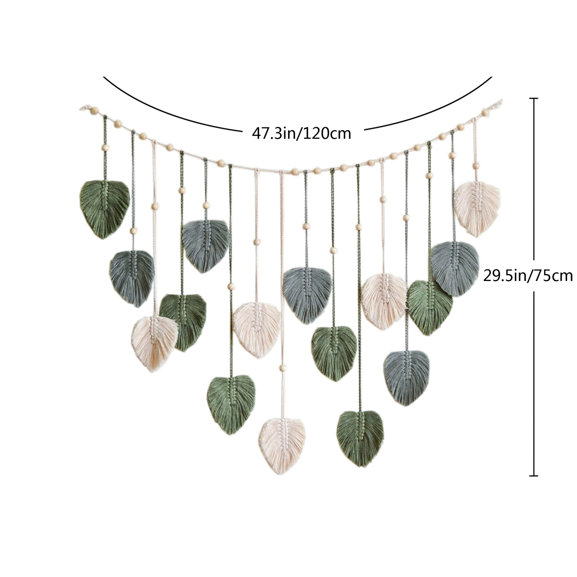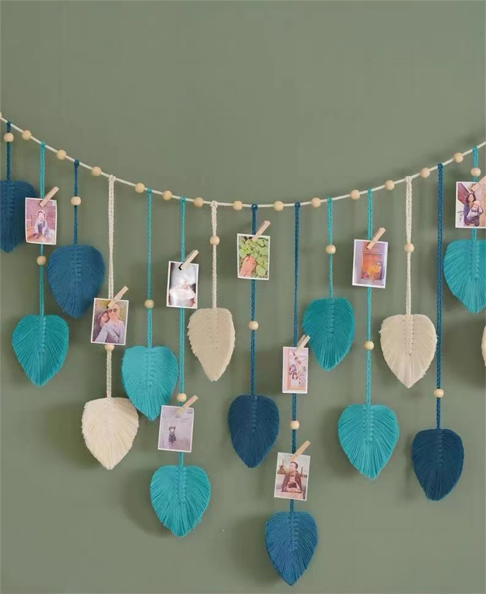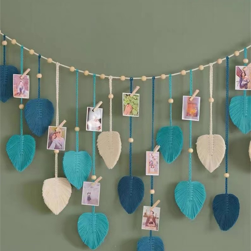 북유럽 스타일의 보헤미안 코튼 로프 수제 나무 구슬 잎 사진 벽 교수형 태피스트리 술 벽 교수형