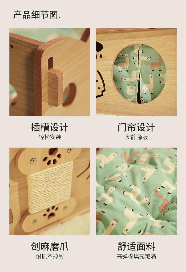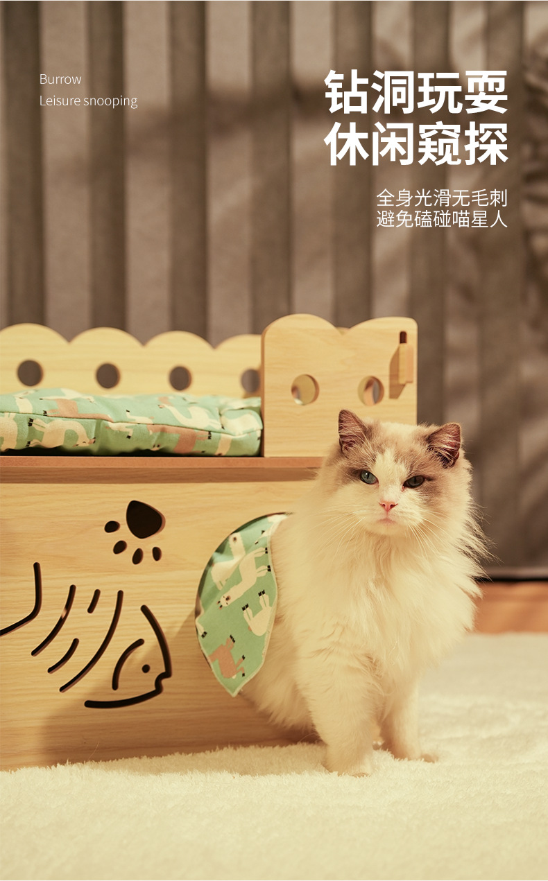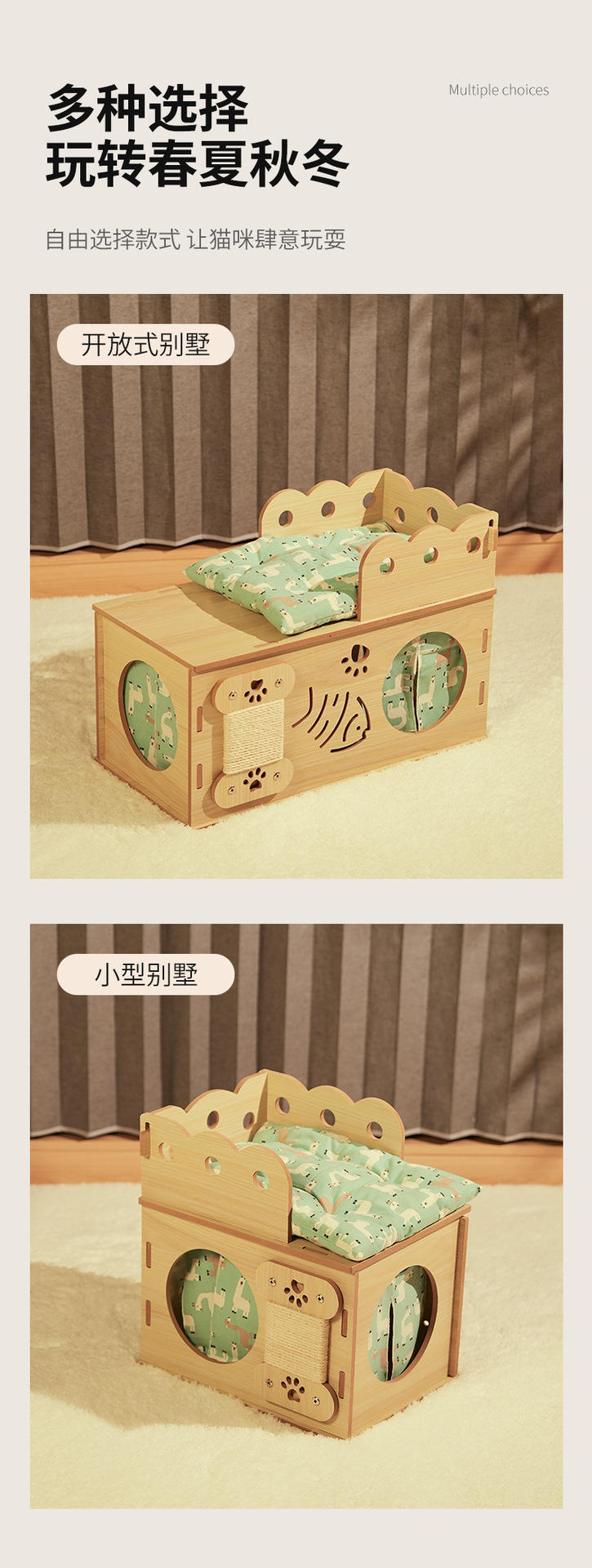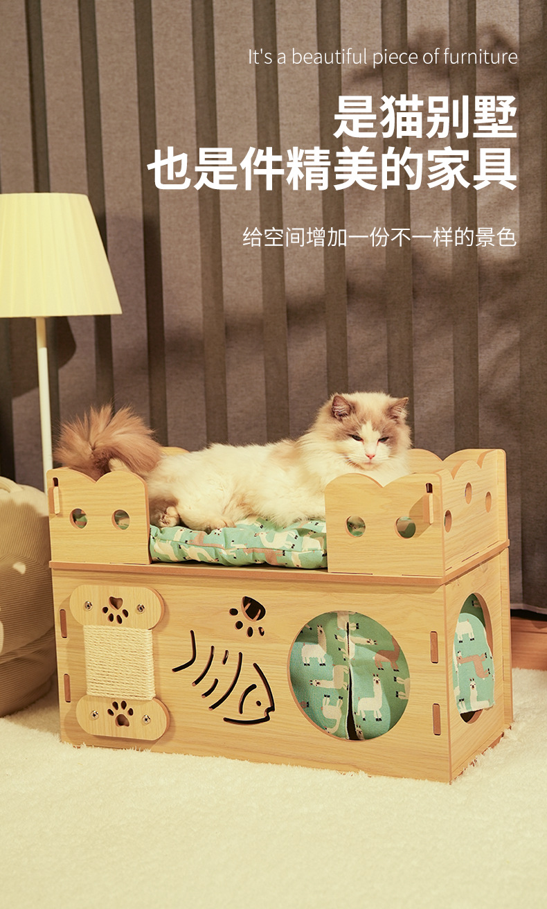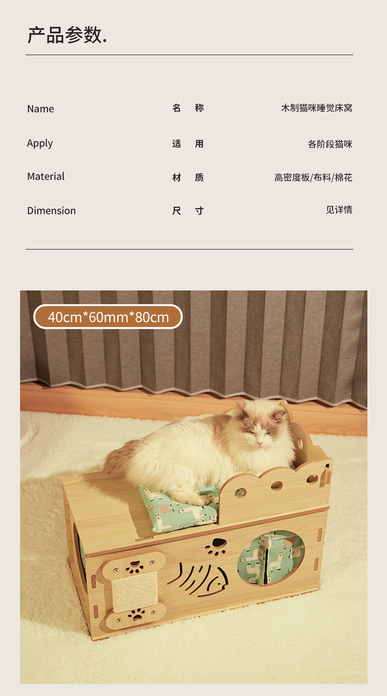 • (업그레이드 버전) 고양이 침대 오크 길이 60CM 폭 32 높이 42 매칭 매트 포함
