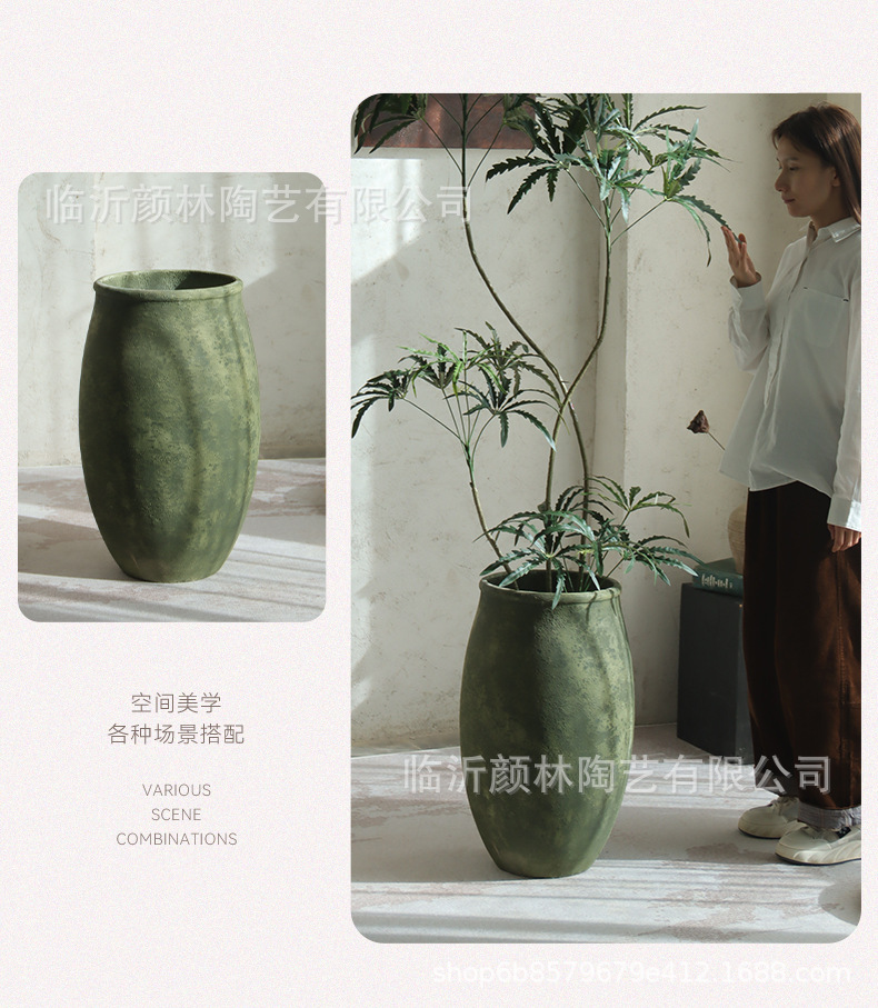 빈티지 창조적 인 대형 바닥 서 시멘트 꽃 화병 거실 정원 쇼핑몰 장식 녹색 식물 냄비