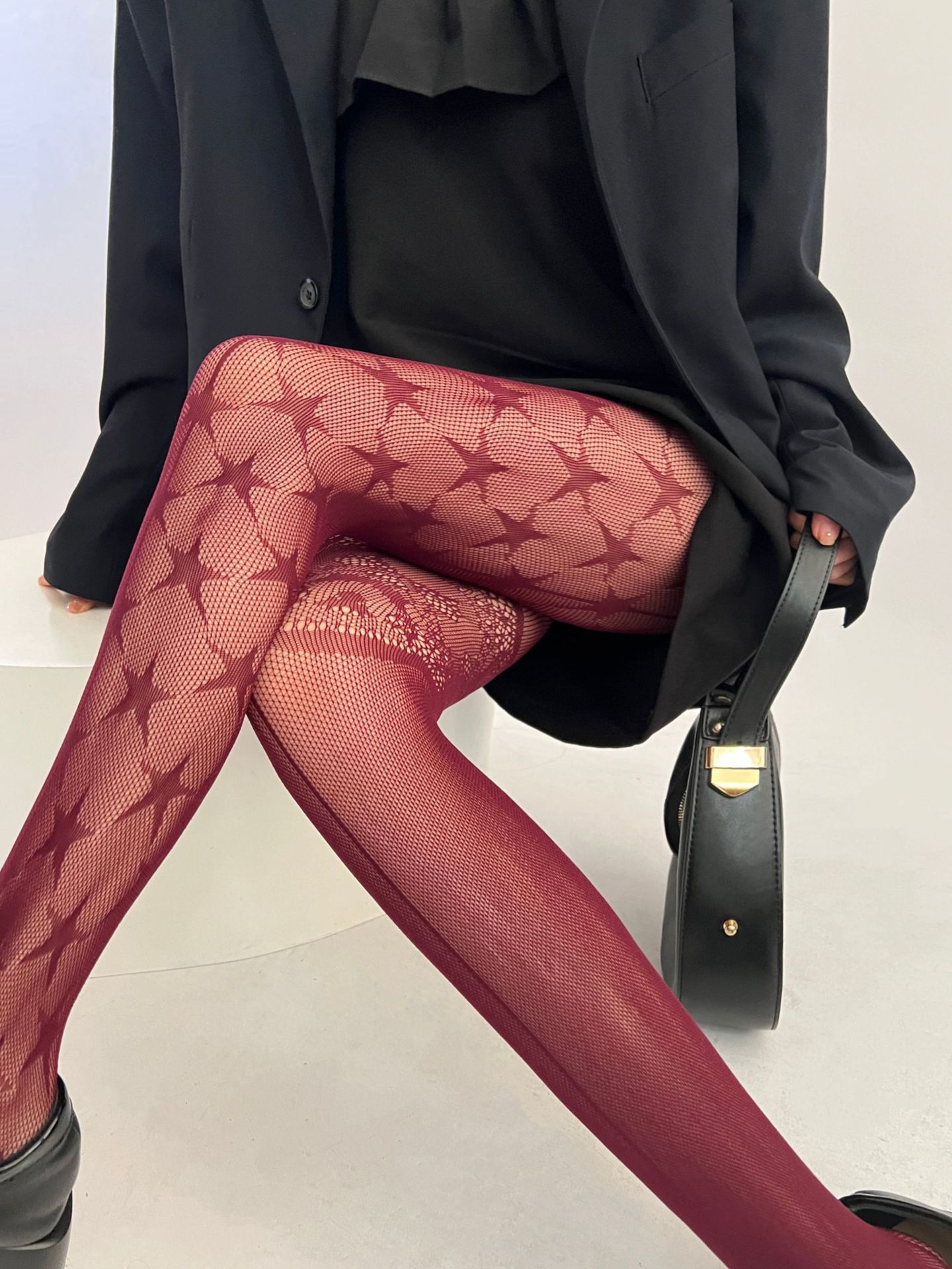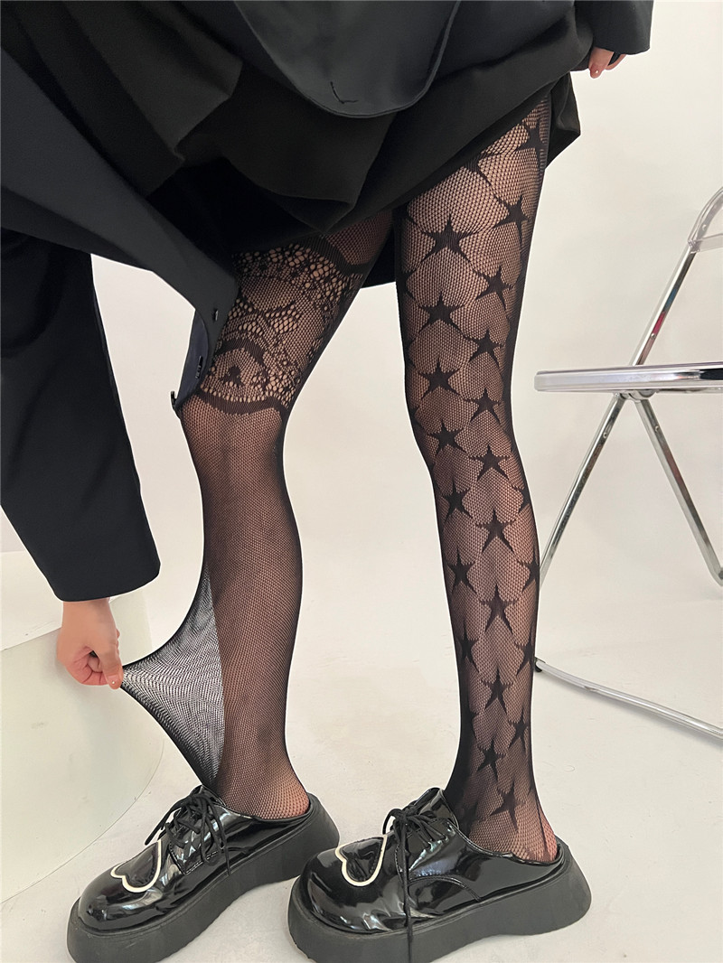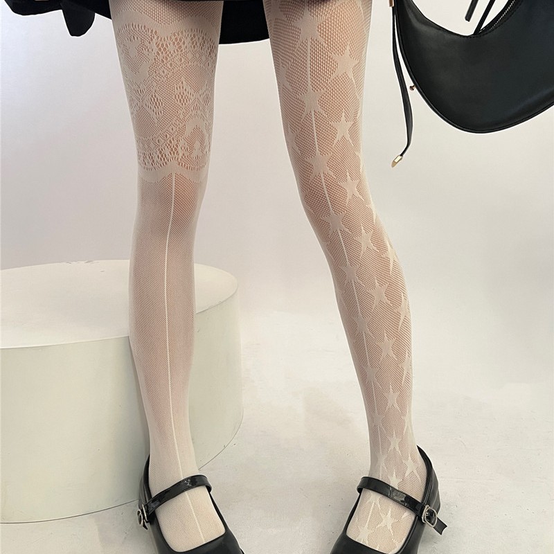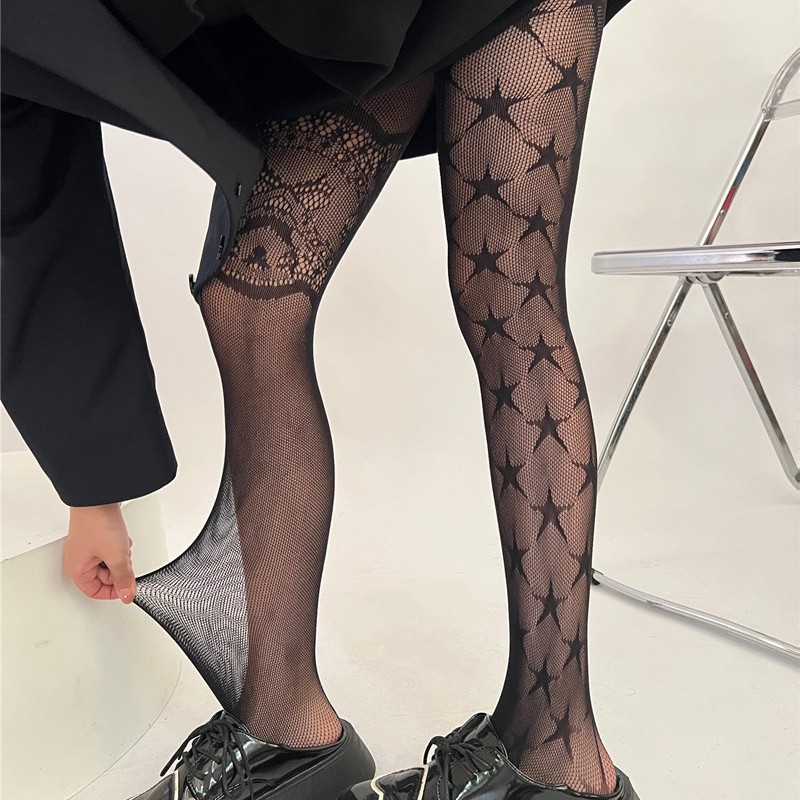 봄과 여름 소수 AB 왼쪽과 오른쪽 비대칭 직선 스타 꽃 그물 스타킹 안티 훅 실크 y2k 바닥 팬티 스타킹 여성