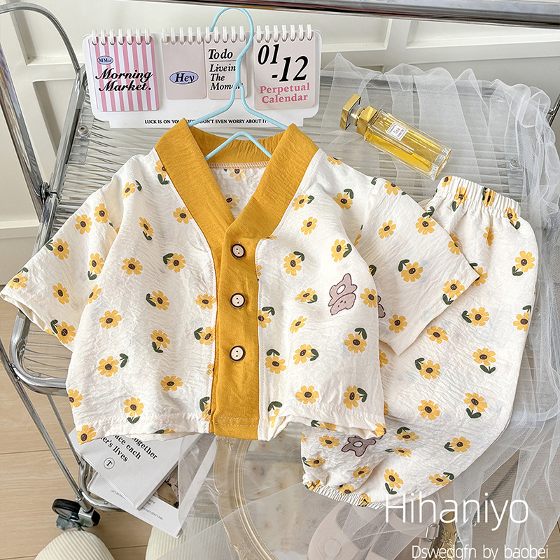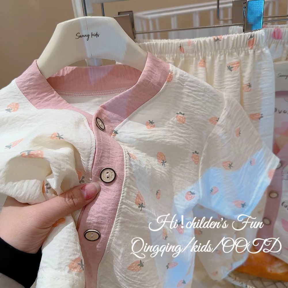 2025 어린이 구름 면 홈웨어 잠옷 남녀 아동 프린트 세트 7부 소매 투피스 얇은 만화 스타일