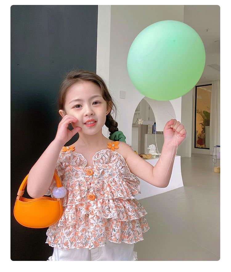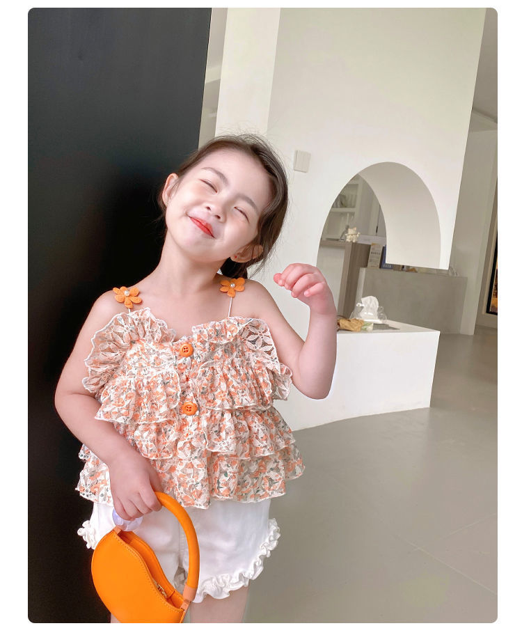 한국 스타일 여자 민소매 인형 셔츠 아기의 여름 쉬폰 2025 새로운 도착 서양식 여름 어린이 최고 트렌디 슬링스토어 가기